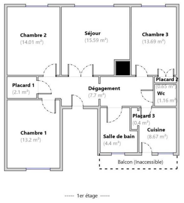 Appartement 3 pièce(s) 2 chambre(s) 64.41 m²