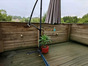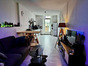 une spacieuse pièce de vie regroupant salon, salle à manger et cuisine ouverte, donnant accès à un grand balcon avec vue sur le jardin et la piste cyclable qui mène au centre-ville à pied.