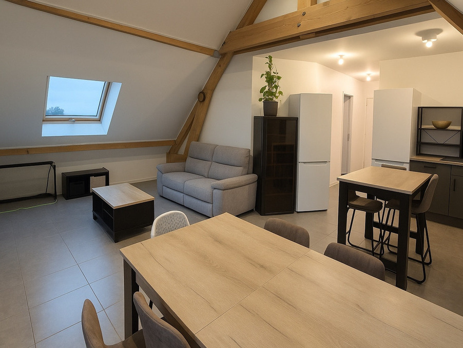 La pièce de vie, véritable coup de coeur de l'appartement, développe 40 m2 au sol et (29 m2 carrez), offrant ainsi un espace convivial pour vos repas et moments de détente. Sa luminosité et ses volumes sous toiture en font un lieu chaleureux et accueillant.