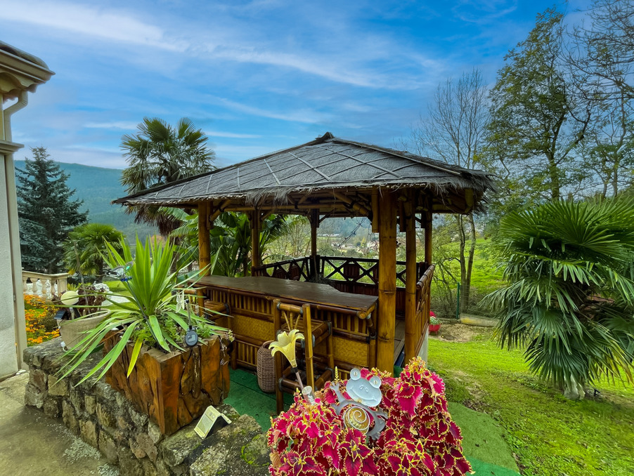Vous profiterez du parc arboré entièrement paysagé, disposant d'un spa abrité par un kiosque en bambou, d'une fontaine en marbre.