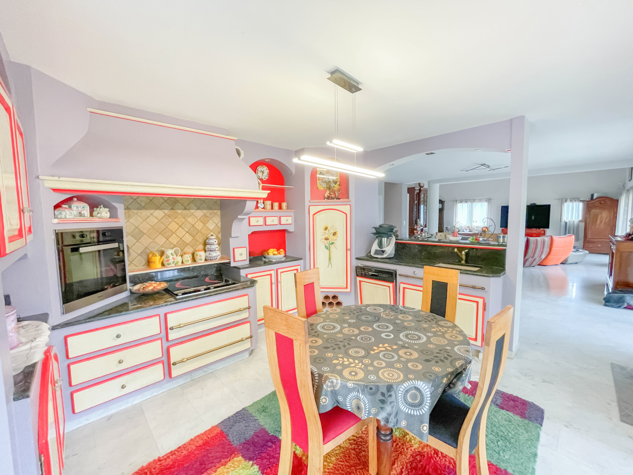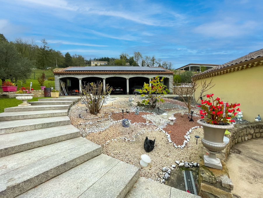 Propriété de standing construite avec des matériaux de grande qualité : marbre, granite, menuiseries mixtes alu/bois avec volets roulants... disposant de nombreux espaces annexes comme un sous-sol chauffé de 110m2 qui vous permettra d'aménager également une salle de sport, un home cinéma ou tout autre espace de loisir et de convivialité, un atelier, une cave, un grand car-port de 80m2 pouvant abriter 5 voitures...