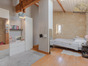 Commençons la visite. Face à nous, la superbe façade en pierre donne immédiatement le ton. Une fois passée l'entrée, la maison se dévoile en deux ailes distinctes. Sur votre gauche, une première partie à aménager selon vos envies : trois chambres, un petit bureau, ou pourquoi pas un espace dédié à une profession libérale.