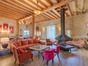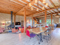 Nous avançons jusqu'à l'extrémité de la maison... Et là, le coup de coeur : une vaste pièce de vie de plus de 115 m2, sur 2 niveaux, avec ses volumes impressionnants, ses poutres apparentes, et ses larges ouvertures sur la terrasse et le jardin.