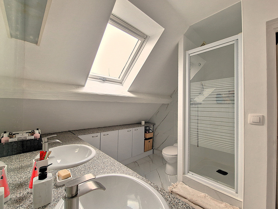 Étage : grande pièce palière polyvalente, 2 chambres de plus de 14 m2, salle de douche avec WC et dressing