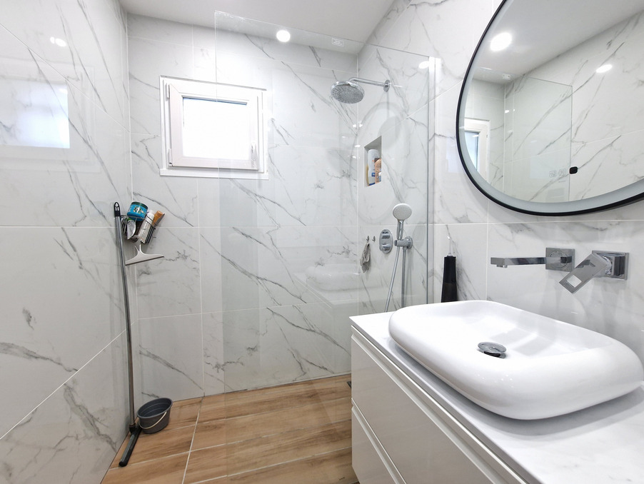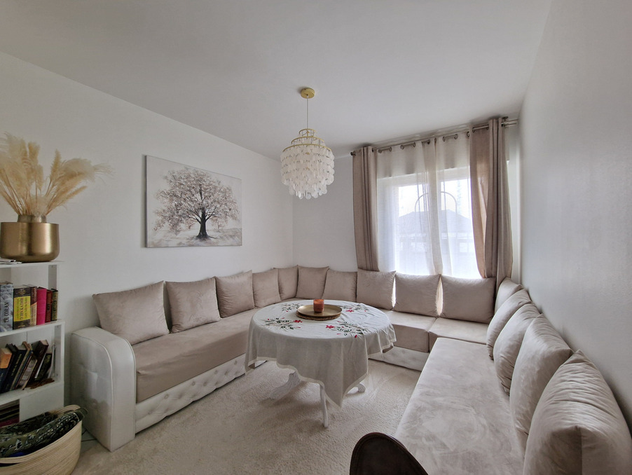 Rez-de-chaussée : vaste séjour de 50 m2 avec cuisine américaine ouverte, 2 chambres de plus de 12 m2, salle de douche moderne, WC indépendant.