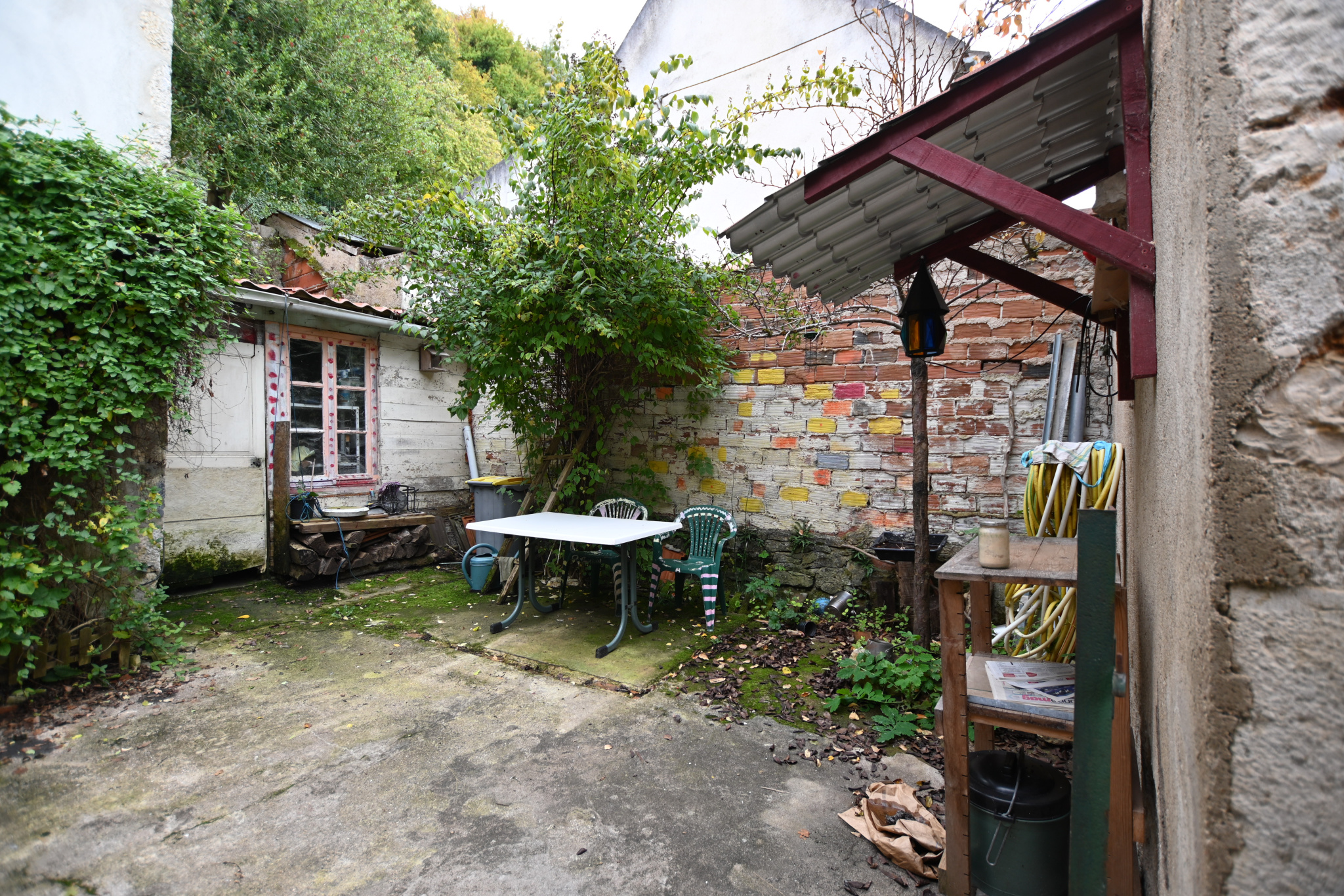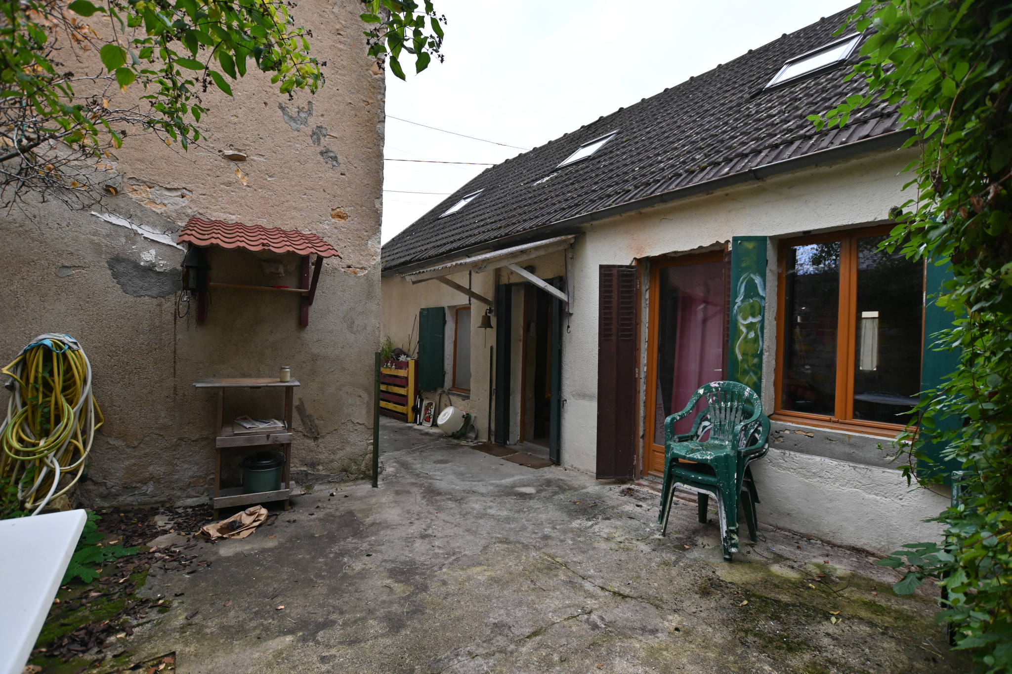 À l'extérieur, une cour relie les deux maisons, avec un atelier pour les bricoleurs ou artistes en herbe. À une cinquantaine de mètres, un grand terrain arboré avec potager vous attend pour profiter des joies du jardinage, des jeux en plein air ou simplement du calme de la campagne.