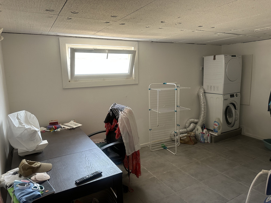 Le sous sol acceuille un garage, un atelier, une cave, une lingerie et une piéce actuellement aménagée en salle de projection.