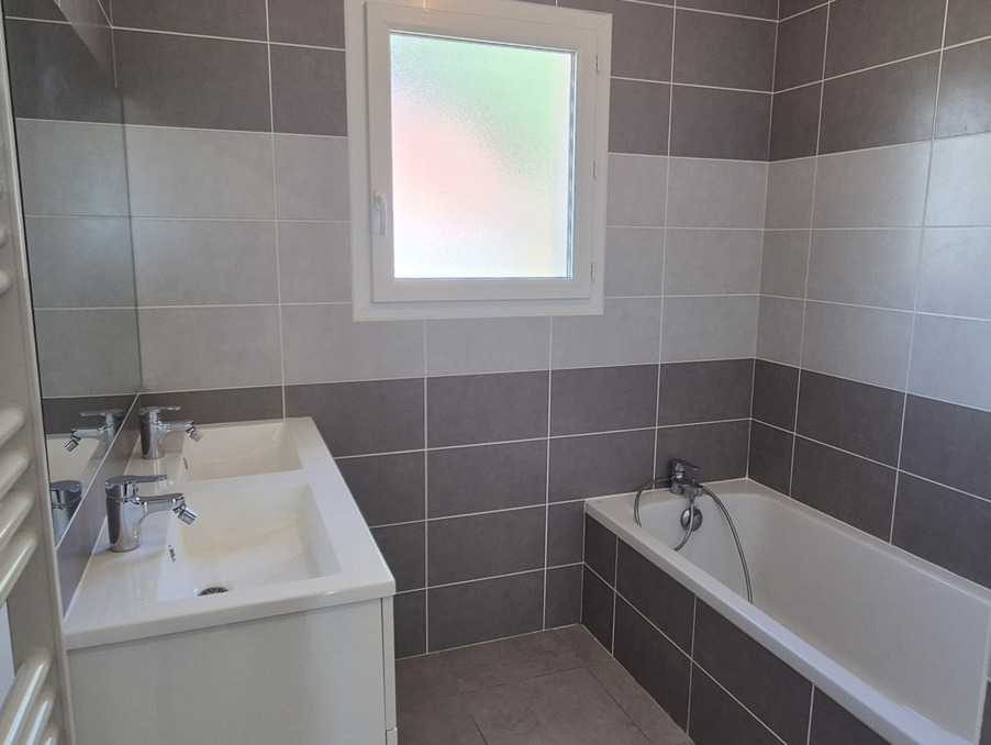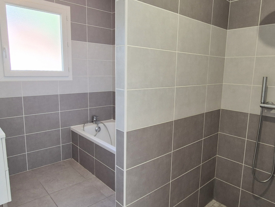 À l'étage, vous trouverez trois confortables chambres, toutes pourvues de placards muraux aménagés, ainsi qu'une superbe salle de bains avec double vasque, baignoire et douche à l'italienne, offrant confort et modernité.