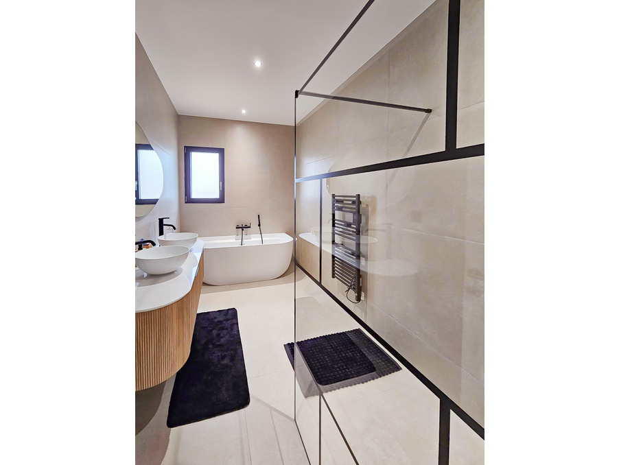 EN EXCLUSIVITE - Maison contemporaine plain pied, neuve, avec des prestations haut de gamme, de 136m2 + garage isolé et carrelé de 25m2 sur un terrain de 528m2 plat et clos.
