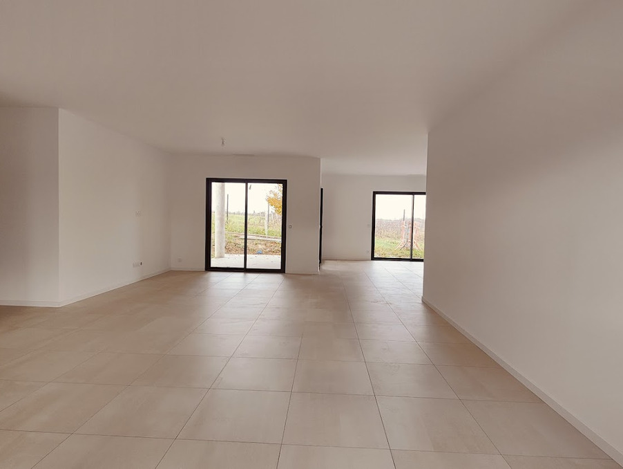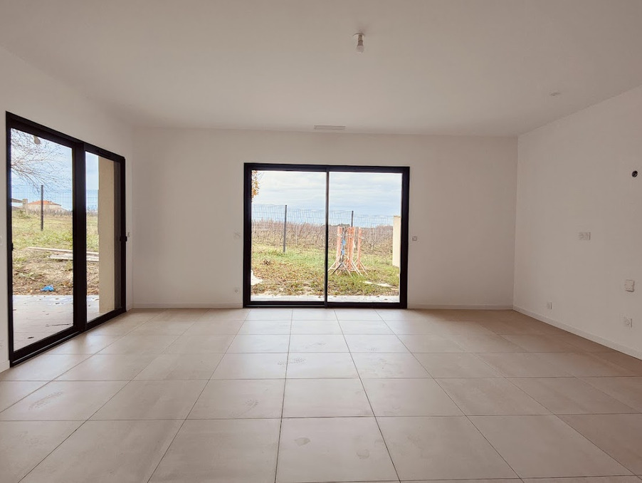 Espace dédié à une grande cuisine ouverte sur le jardin et la salle à manger, agrémentée de 3 grandes baies vitrées coulissantes en aluminium, offrant une belle luminosité. À noter : la cuisine est à installer par les futurs propriétaires.