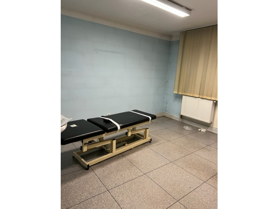 En rdc : une entrée, deux wc avec lave mains, une salle d'attente de 26.50m2, un bureau, une salle de consultation, un wc, une autre salle de consultation et un sas menant à l'extèrieur.
