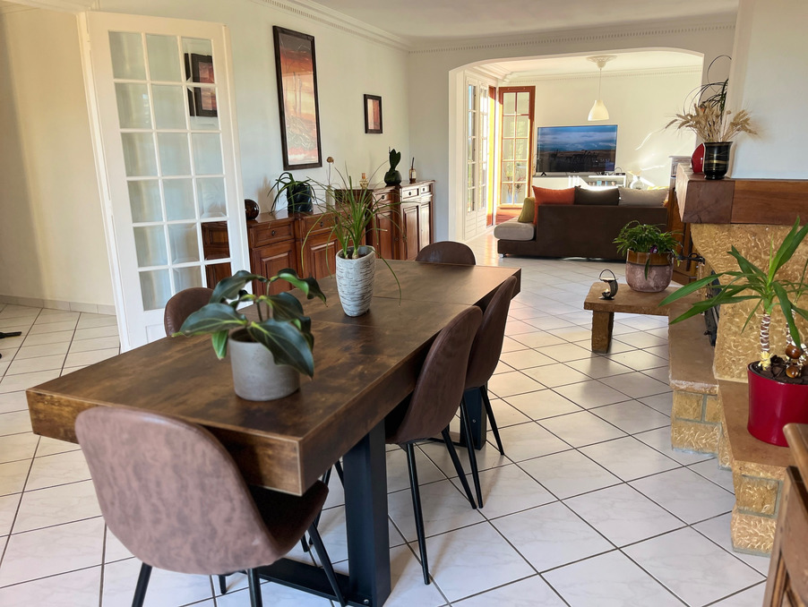 Sur les hauteurs, à 900 mètres du centre, des commerces et des moyens de transports, dans un environnement calme avec vue sur les monts d'or, belle maison traditionnelle (1975) parfaitement entretenue sur sous-sol, spacieuse, 200 M2 habitable au total avec un grand séjour salon fermé de 41 M2, 4 chambres de bonne dimension (2 à chaque niveaux), cuisine indépendante. SDB avec baignoire balneo...au sous sol une buanderie, 1 une grande pièce type salle de jeux avec son coin bar, coin atelier, cave.