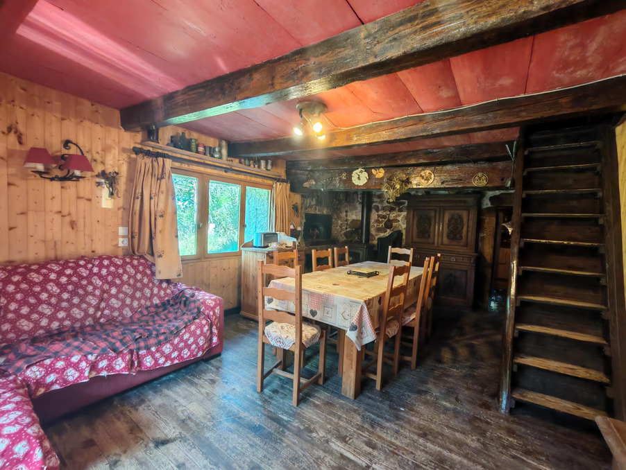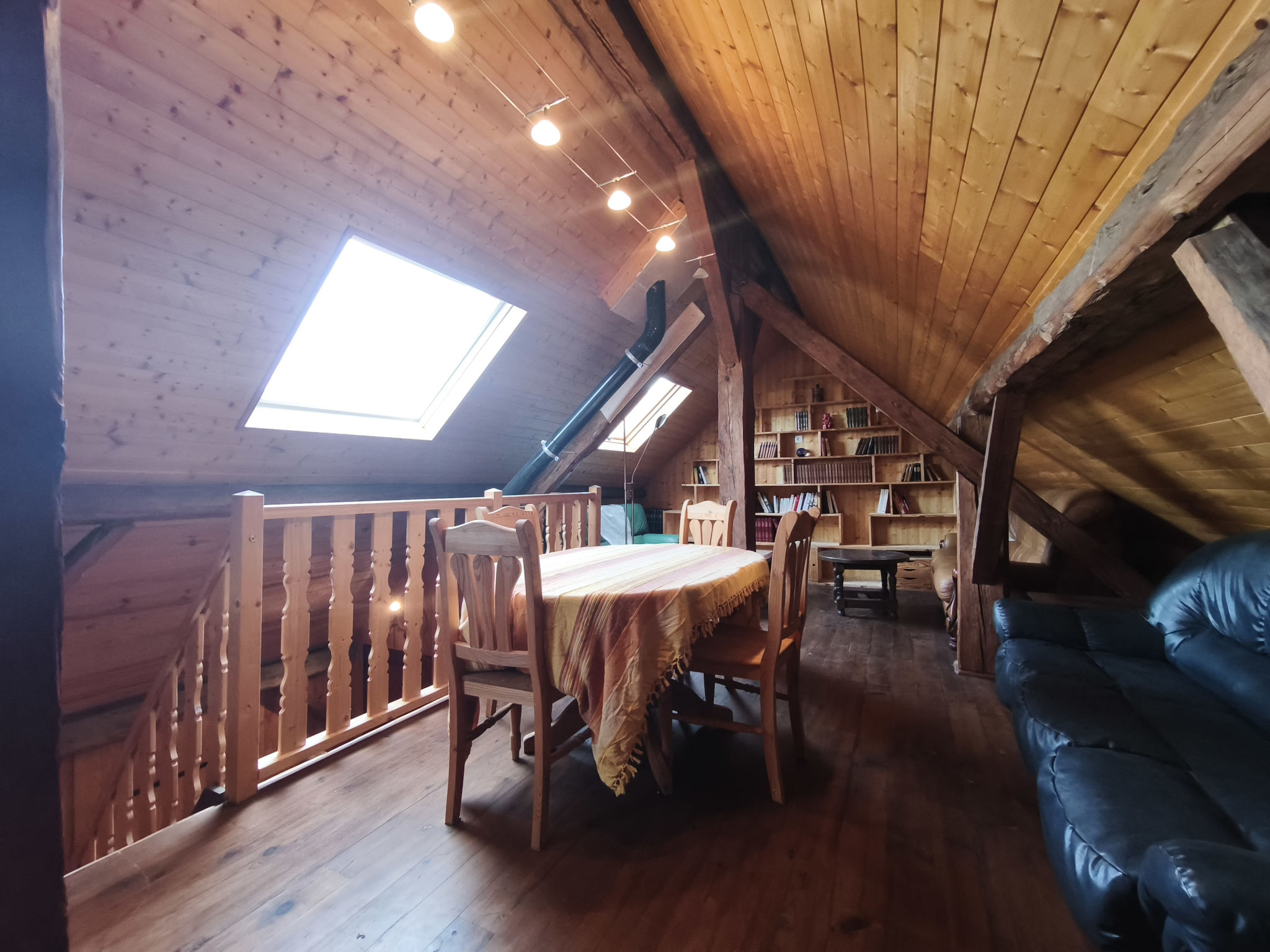- un 1er logement avec cuisine équipée, salon/salle à manger avec 2 ouvertures à 3 vantaux et poele à bois, 2 chambres, WC avec point d'eau + 2 pièces aménagés sous toiture (espace nuit d'appoint)