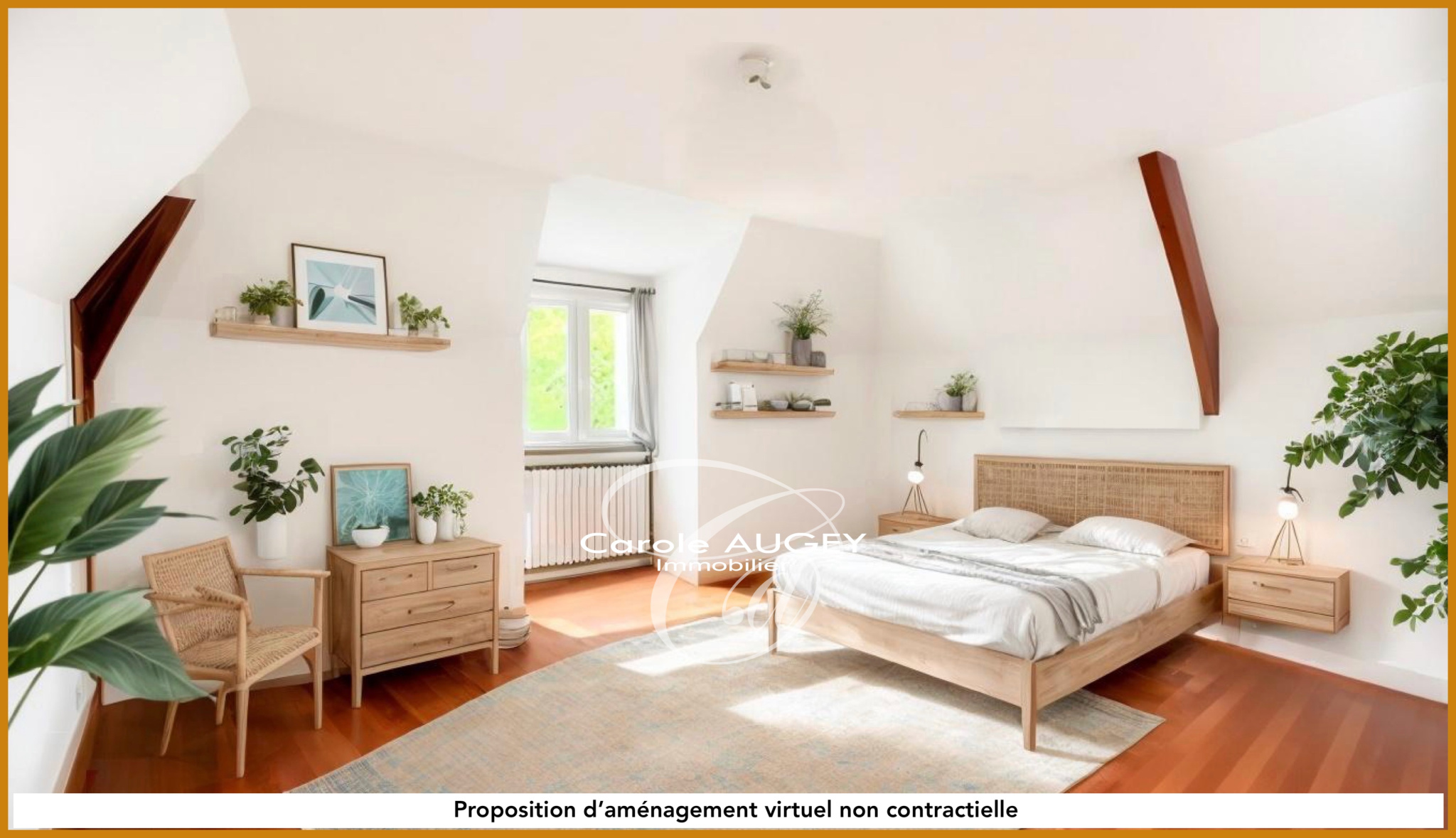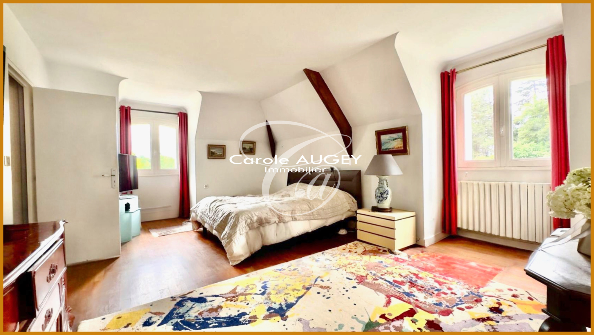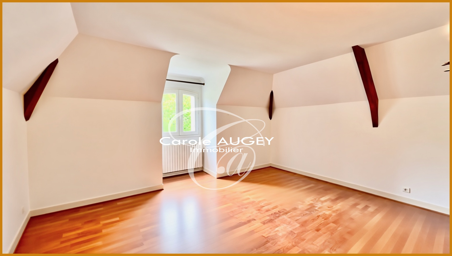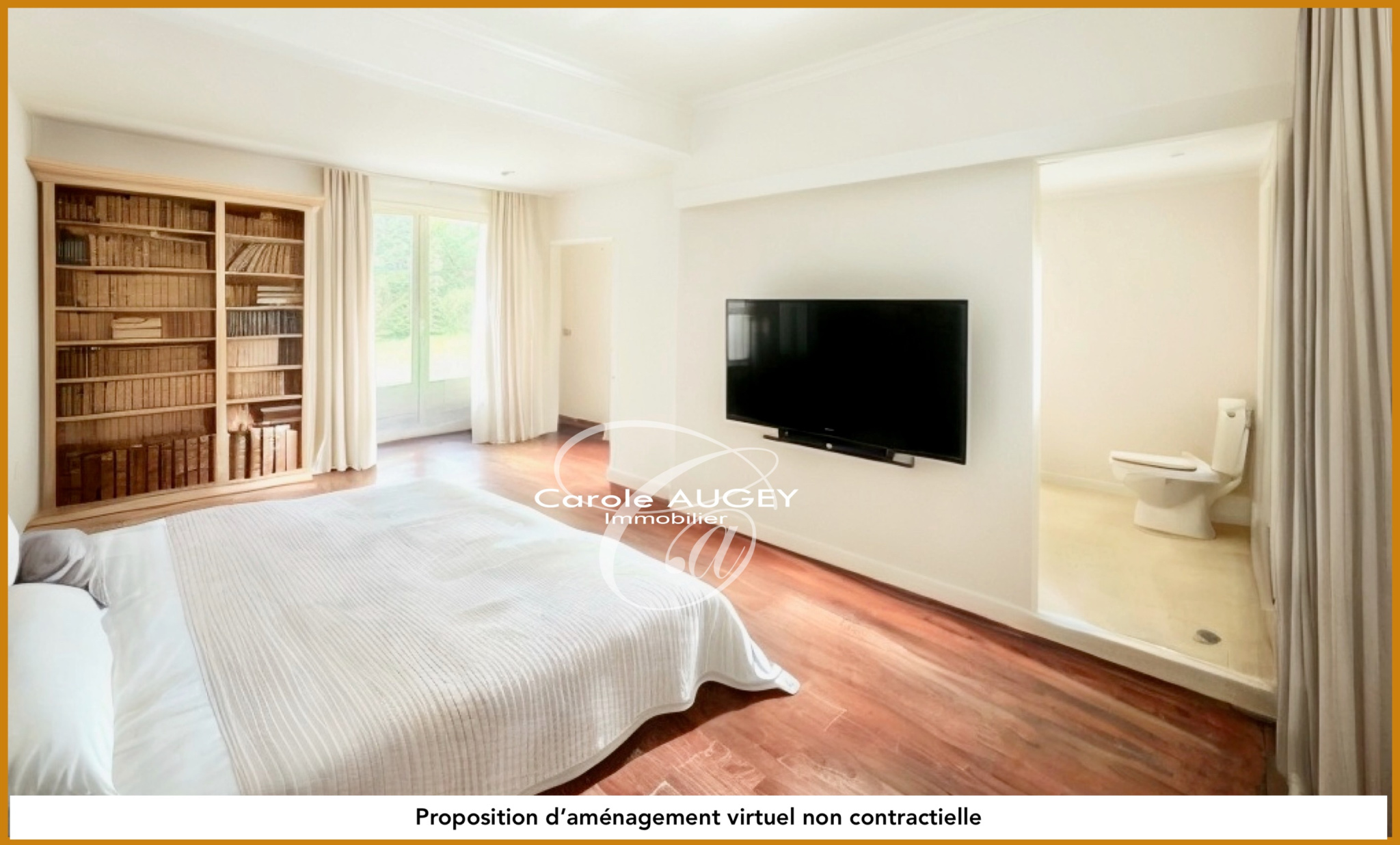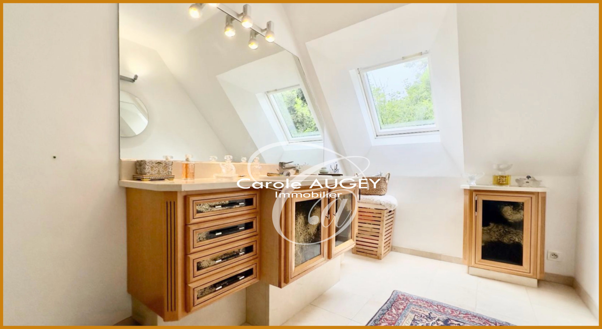 La suite parentale, située en rez-de-jardin, s'ouvre directement sur le parc et invite au repos. À l'étage, deux chambres généreuses, dont une avec salle d'eau privative, complètent l'espace nuit. Une grande salle de bain et un dressing de belle facture viennent parfaire cet étage.