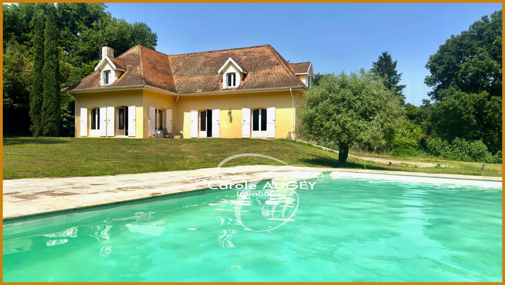 À l'extérieur, la piscine s'inscrit naturellement dans le décor paysager, semblant se fondre entre ciel et verdure. Un double garage, une buanderie et une cave discrète assurent des espaces pratiques et parfaitement organisés.
