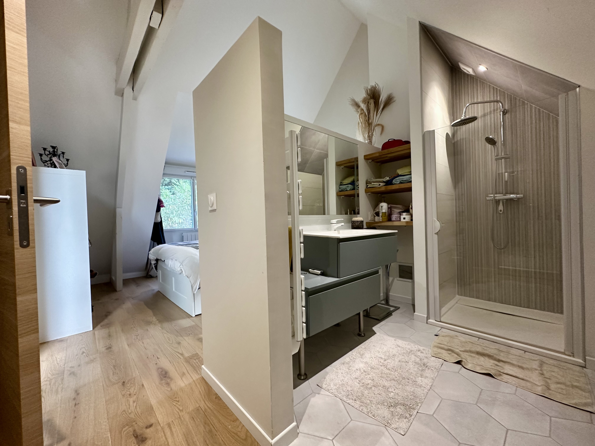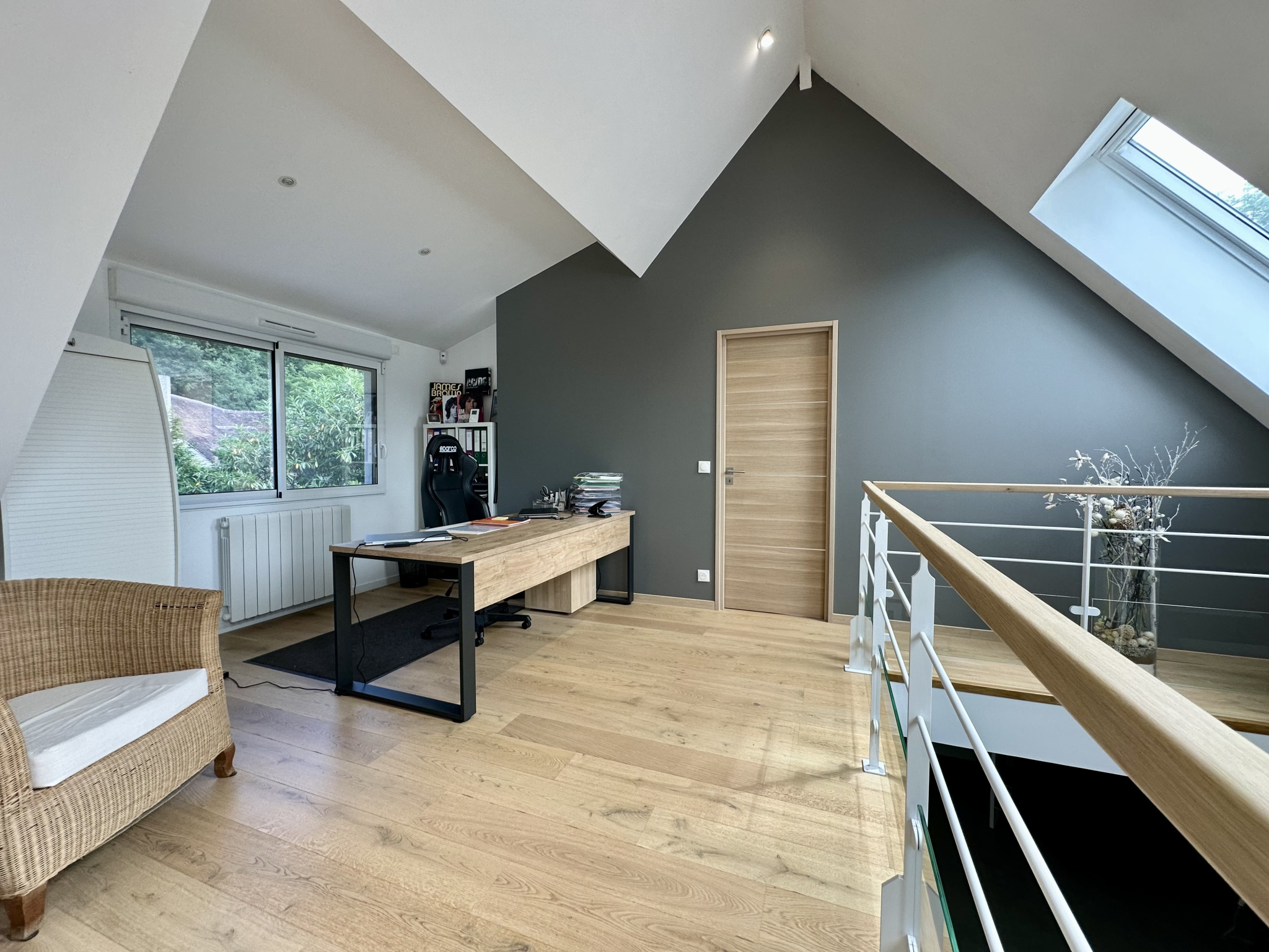 A l'étage , vous profiterez d'une mezzanine pouvant faire office de bureau , 2 belles suites parentales avec dressing et salle d'eau , un wc séparé.