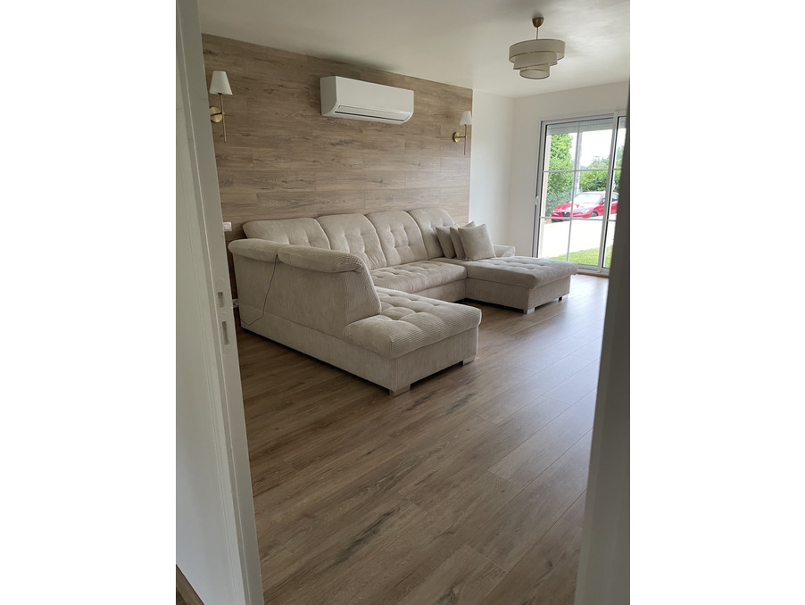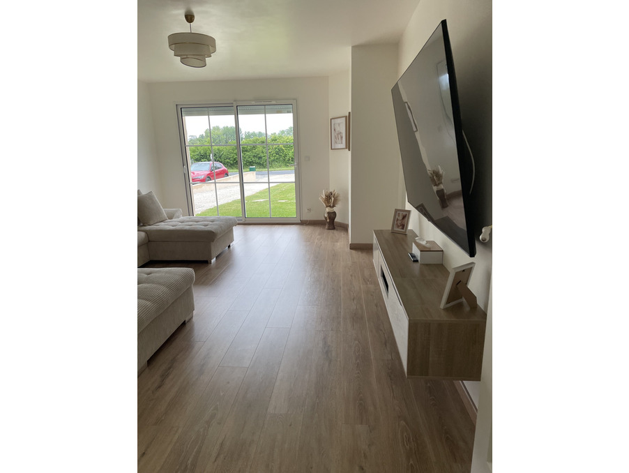 MONTMERAC Nathalie ROUSSEAU vous propose en exclusivité cette maison de 120 m2 de plain pied de 2024, équipée d'une cuisine séparée, un cellier, une vaste pièce de vie. Le couloir dessert 3 belles chambres, toilettes et salle d'eau. Le garage est attenant à la maison . Le jardin de 800 m2 est clos. La maison est chauffée grace à une climatisation air/air