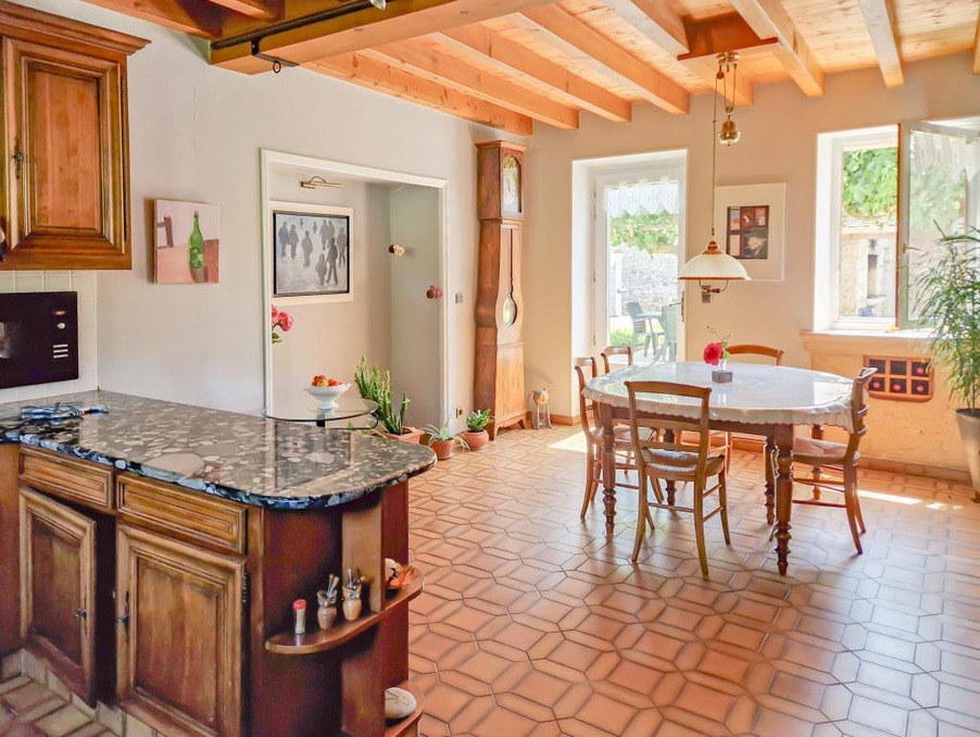 Garage 60 m2, four à pain fonctionnel, local piscine et cave de plain-pied.