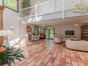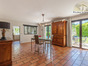 L'entrée avec vestiaire nous accueille et distribue les différents espaces. Sur la gauche, une première grande pièce fait office de salle à manger, baignée de lumière. Sur la droite, on découvre un salon aux volumes généreux, mis en valeur par une belle cheminée en pierre, une grande hauteur sous plafond... et une verrière en toiture qui apporte une agréable lumière naturelle.