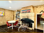 Dès l'entrée, vous serez séduit par la belle pièce de vie, chaleureuse et lumineuse, sublimée par une imposante cheminée à foyer ouvert, parfaite pour réchauffer les soirées d'hiver. Les murs en pierre apparente et le sol foncé contrastent élégamment avec les tonalités douces du mobilier.