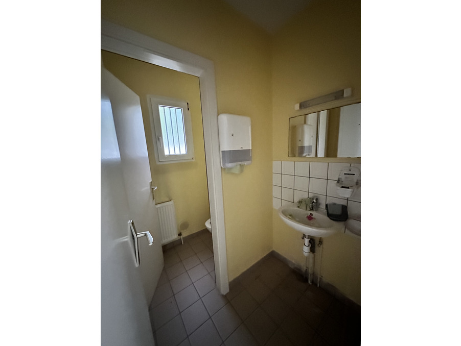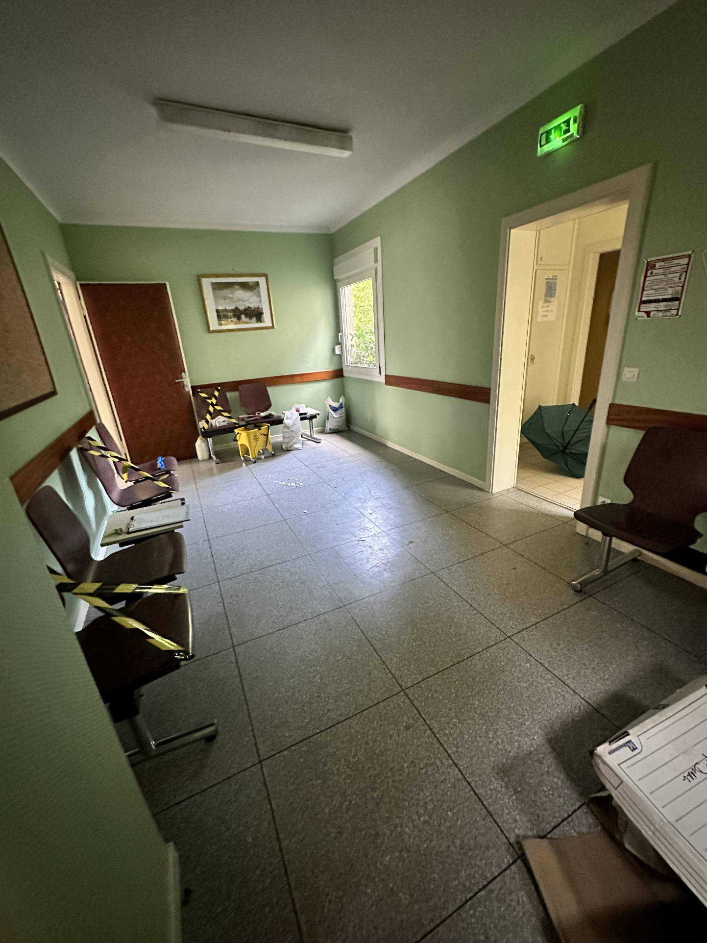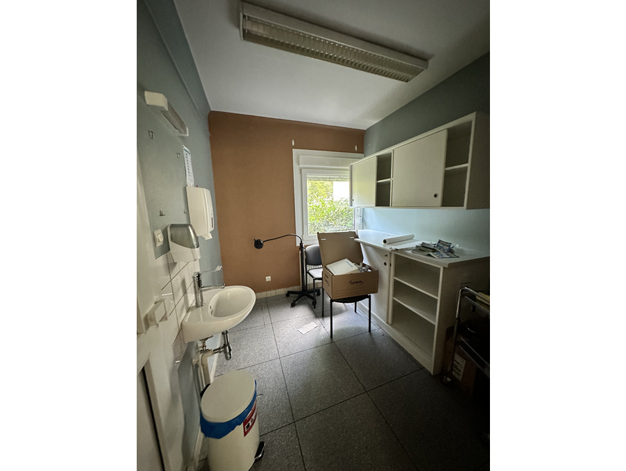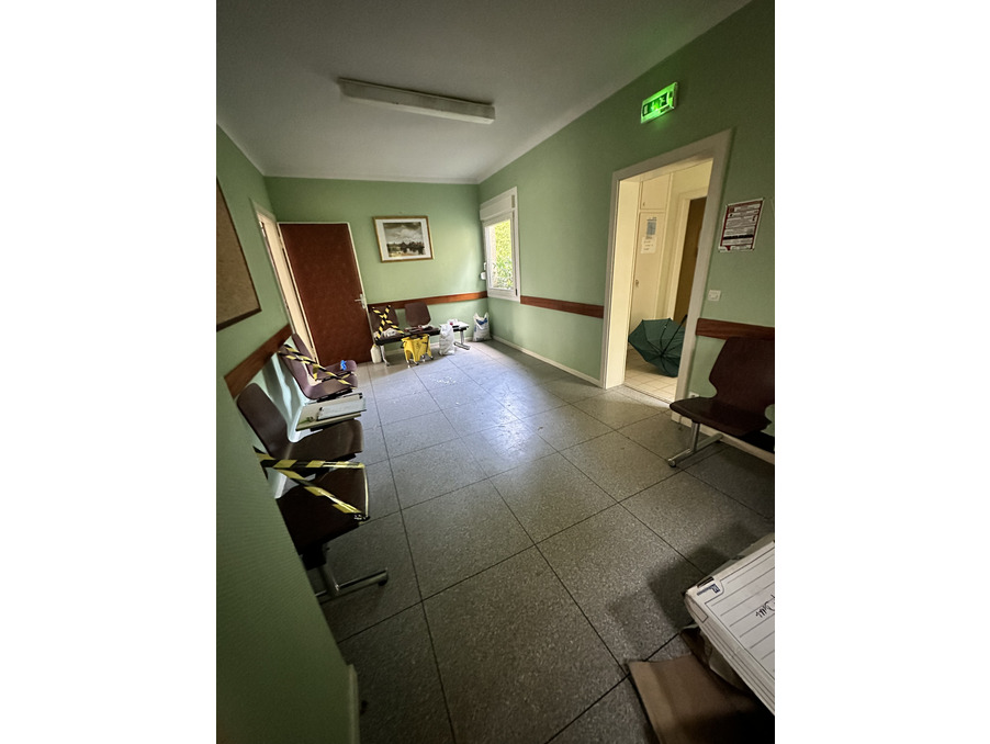 En rdc :d'une entrée avec placards, de deux wc avec lave mains, une salle d'attente de 19m2, un bureau de 18.59m, une salle de soin de 18.59m2, une réserve avec lave mains