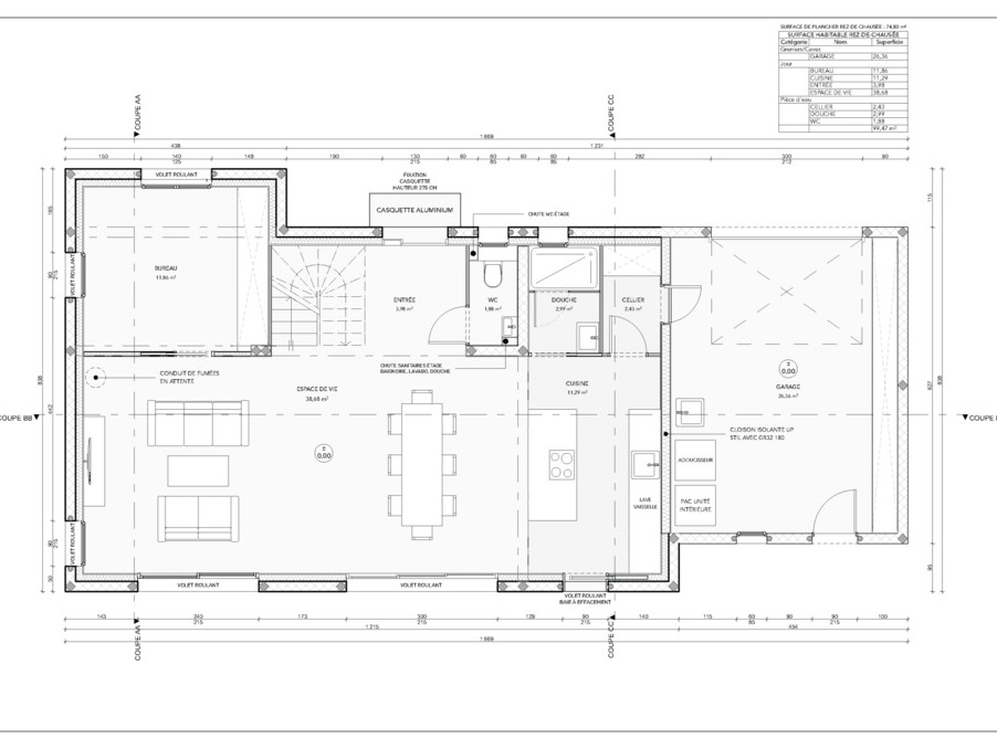 Édifiée sur deux niveaux (R+1), elle développe 122 m2 habitables, complétés par un garage attenant de 26 m2.