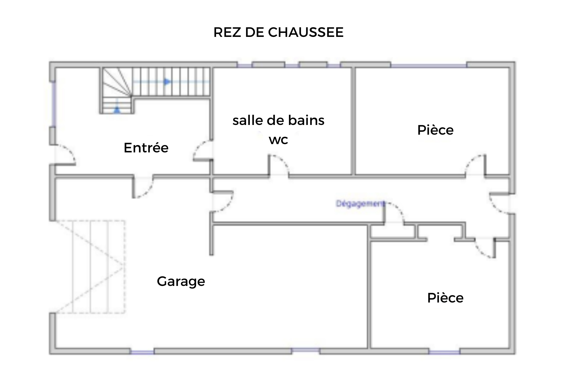 Au rez de chaussée, vous trouverez un hall d'entrée avec rangements, un garage / chaufferie, une salle de bains avec WC et 2 pièces pouvant servir de chambres (11 et 13m2).