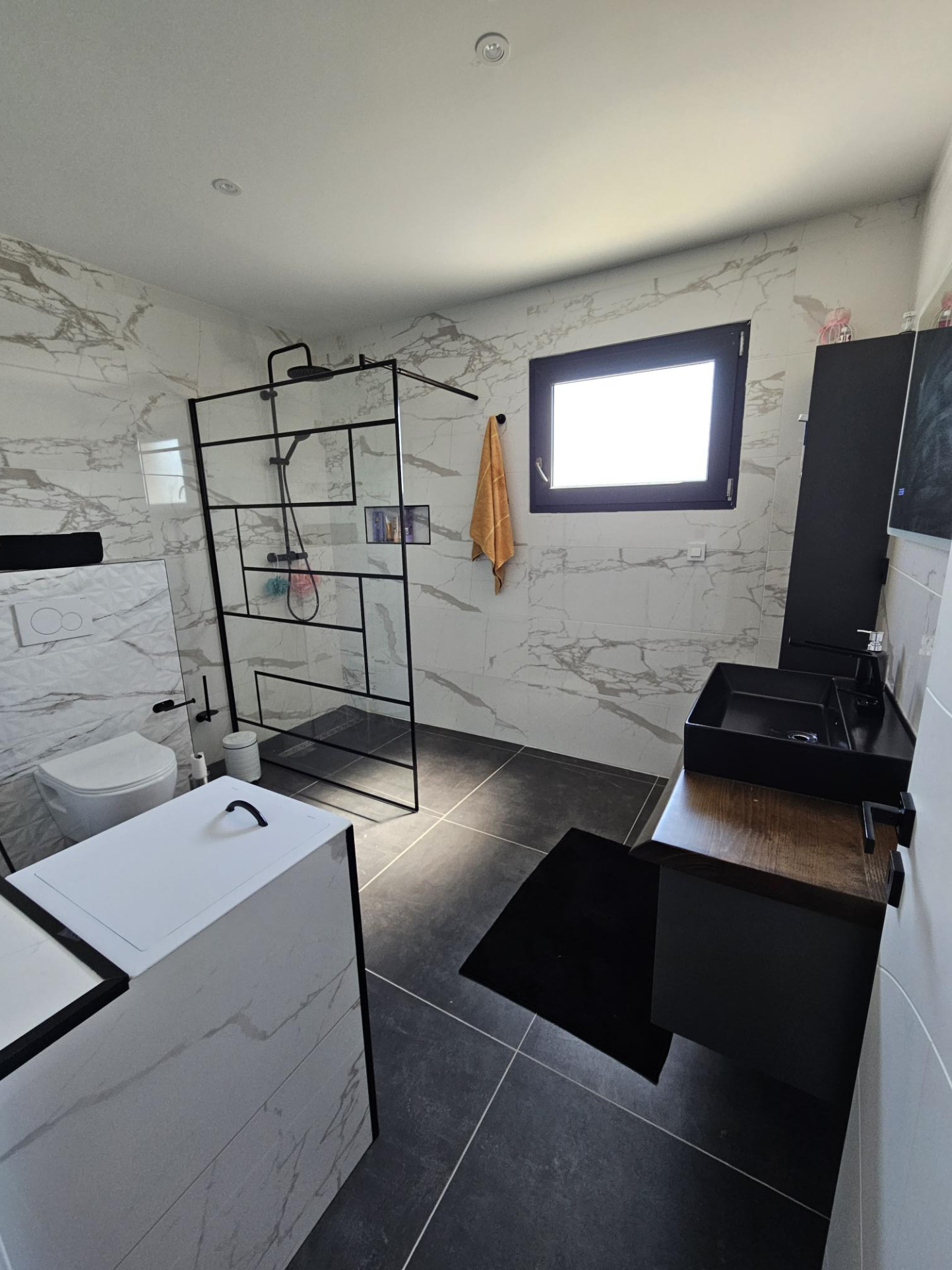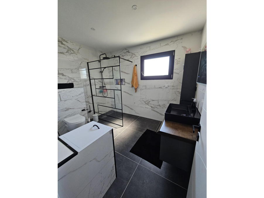 Maison contemporaine de 2023 avec prestations haut de gamme, 125m2 habitable + garage de 25m2 sur un terrain de 350 m2 paysagé avec 2 terrasses, entrée goudronnée située à proximité de toutes les commodités, à 2 kms de la gare, école à pieds et à 18 mn de Vienne et 45 mn de Lyon. Elle offre 4 grandes chambres dont une suite parentale au RDC de 22 m2 avec dressing et salle d'eau privée + 3 chambres à l'étage de 11m2 + 2X13m2 avec salle d'eau familiale, également 2 toilettes. Une pièce à vivre de 42m2 lumineuse et agréable à vivre , agrémentée d'une cuisine américaine équipée avec cave à vin, une grande baie vitrée s'ouvrant sur une terrasse.. Cette maison a toutes les prestations énergétiques d'aujourd'hui - chauffage au sol AIR/EAU avec pompe à chaleur réversible + 1 split AIR/AIR pour climatisation.