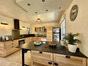 L'entrée s'ouvre sur un hall majestieux avec un escalier en fer forgé , une cuisine contemporaine aménagée et équipée ouverte sur un séjour double 40 m2 baigné de lumière naturelle avec accès aux deux terrasses et au jardin.