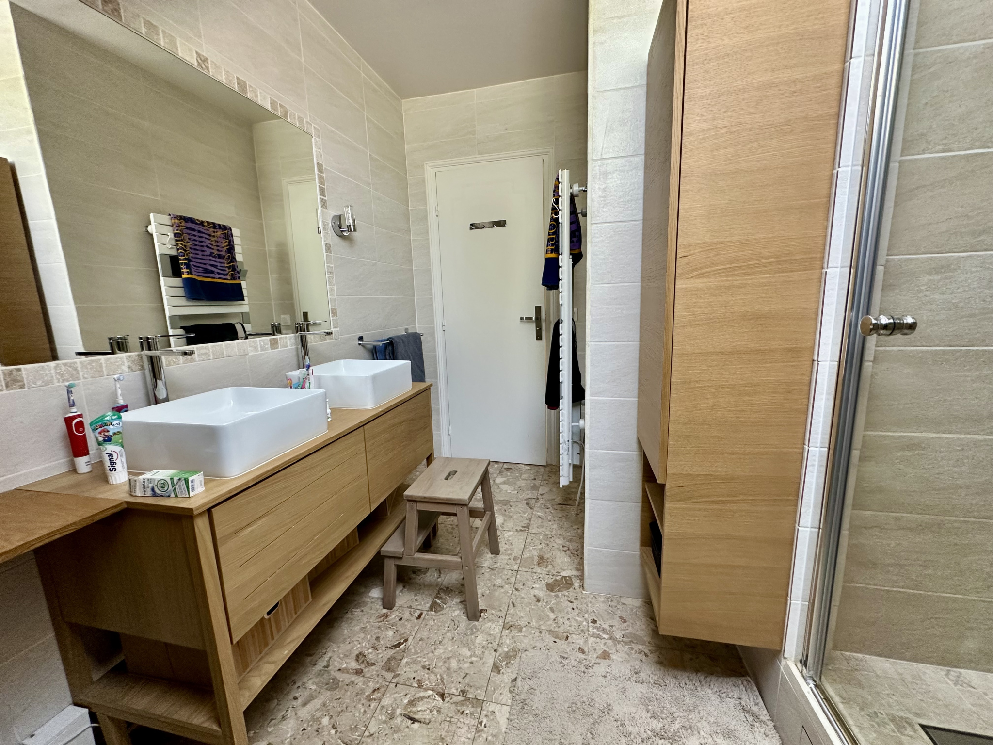 Une suite parentale 18 m2 avec dressing et salle de bains/douche , une seconde chambre ou bureau ainsi qu'un wc avec lave-mains séparé.