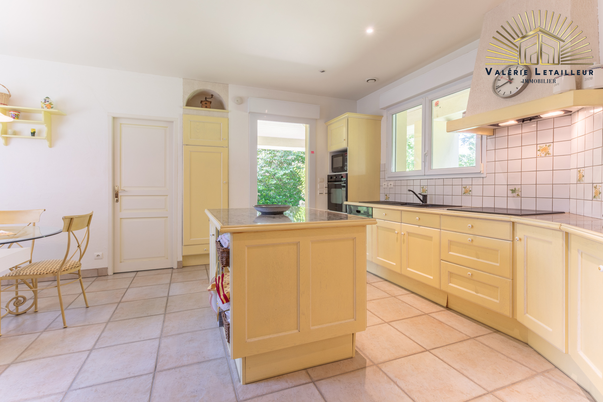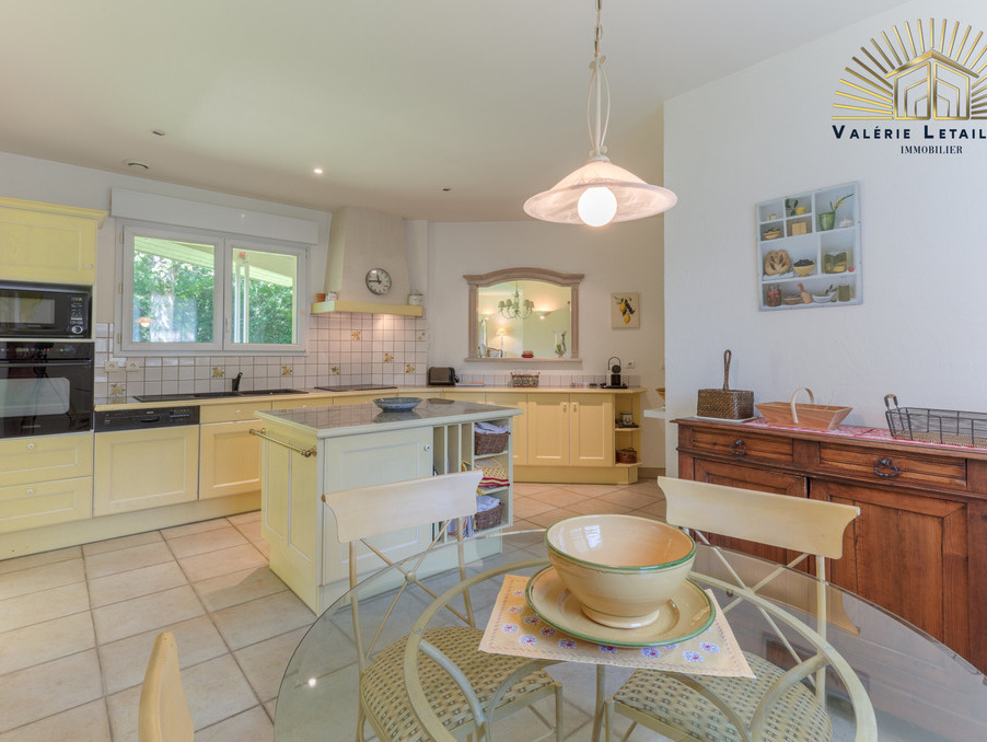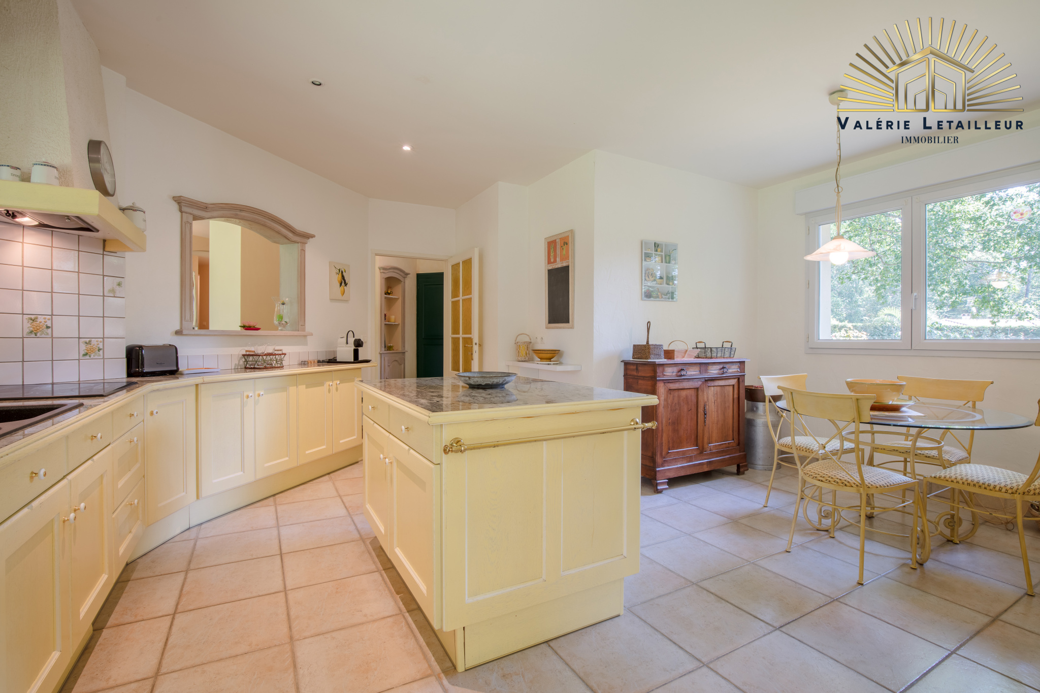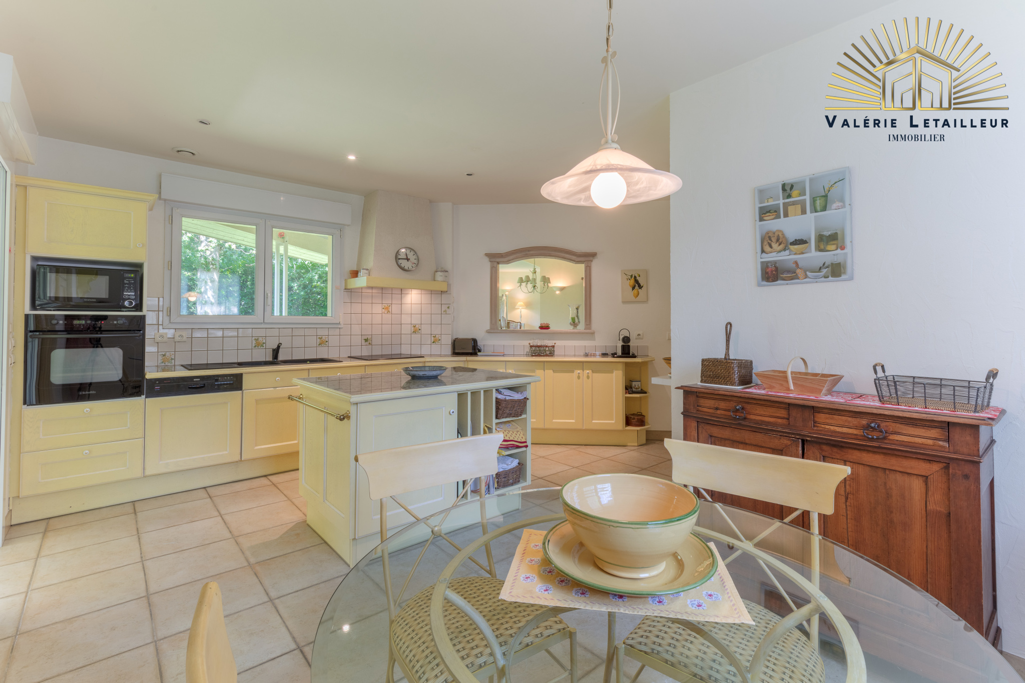 Nous reviendrons sur nos pas pour partir sur notre gauche afin d'entrer dans la cuisine. Elle offre un volume hors norme, permettant d'en profiter pleinement pour y manger ou cuisiner. Celle-ci pourra être ouverte, si vous le souhaitez, pour obtenir 98m2 de pièce de vie. En complément, la cuisine dispose d'un cellier et d'une buanderie dont l'accès est direct.