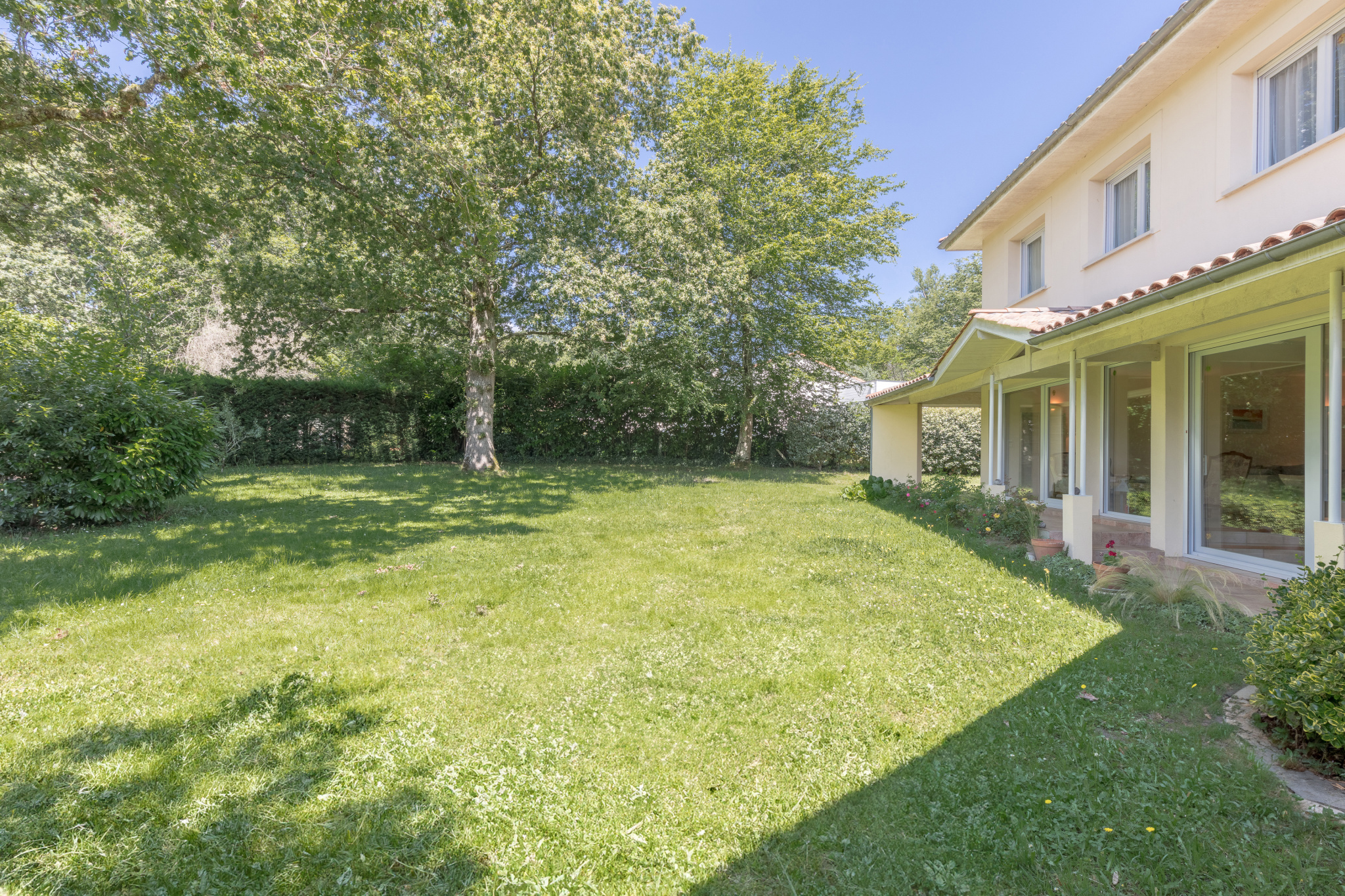 Le jardin offre une jolie vue sur l'architecture résolument contemporaine de la maison. Si vous le souhaitez-vous pourrez facilement y implanter une piscine.