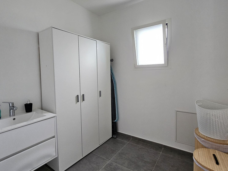 Elle offre au RDC une belle entrée de 13m2 avec placard mural, une pièce à vivre de 50 m2, une grande cuisine américaine entièrement équipée, une salle d'eau + 2 chambres de 12m2 et à l'étage une suite parentale de 20m2 avec salle d'eau privée et dressing s'ouvrant sur une magnifique terrasse avec vue sur le village et les montagnes + une 4ème chambre de 11m2.