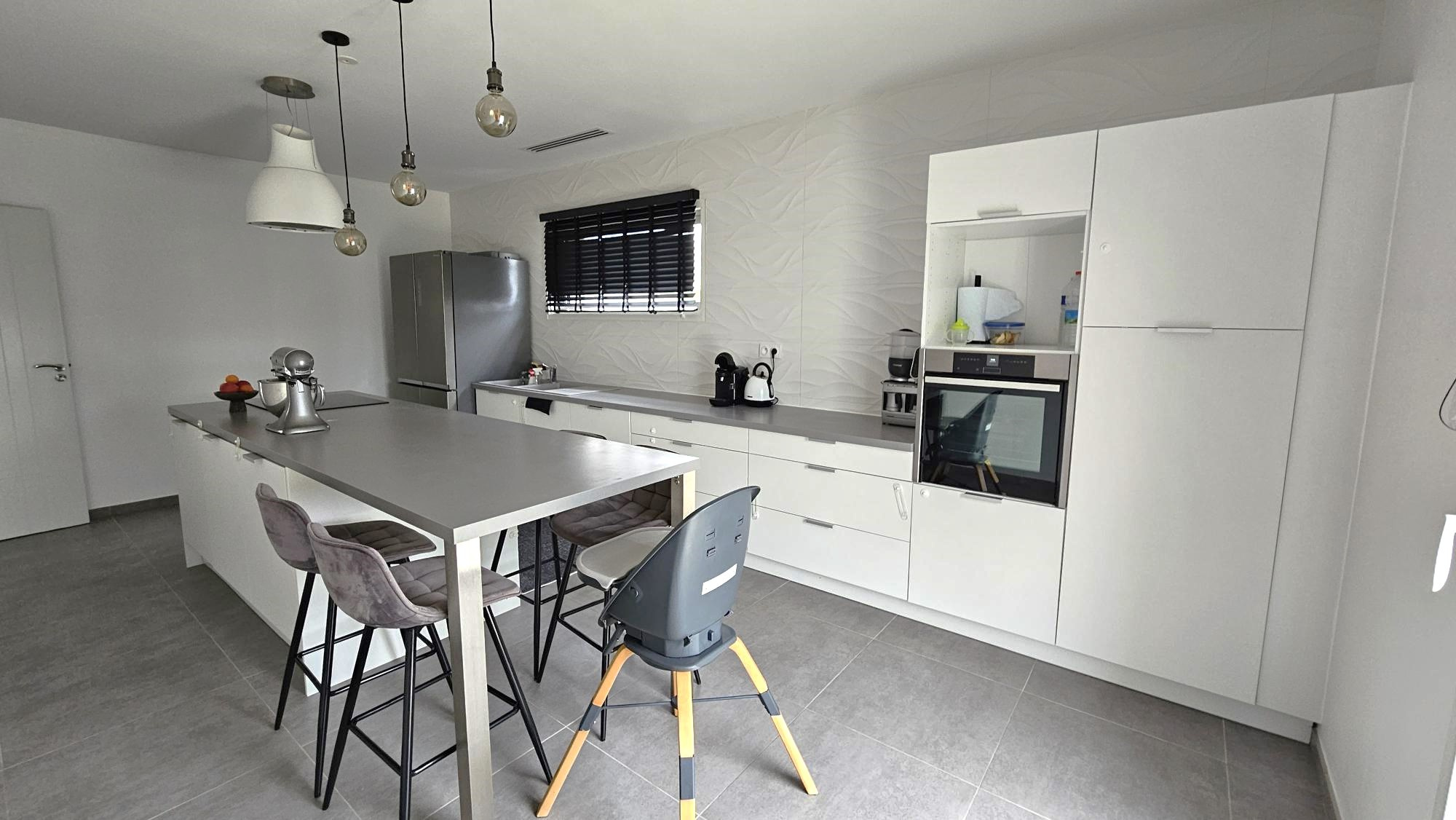 Maison contemporaine de 2018 lumineuse avec de belles prestations env. 140m2 + garage de 30m2 isolé et carrelé sur un terrain plat et clôturé de 750m2 avec entrée goudronnée, située dans un quartier calme et agréable.
