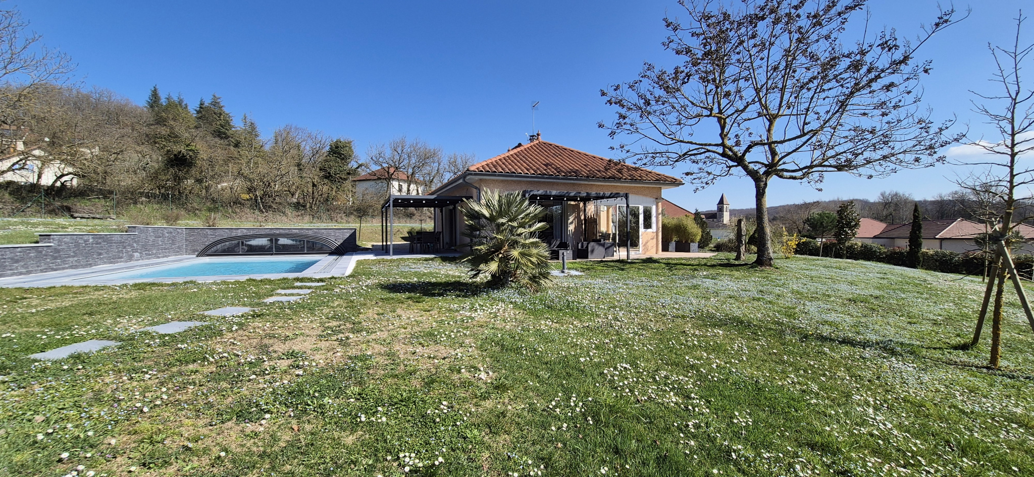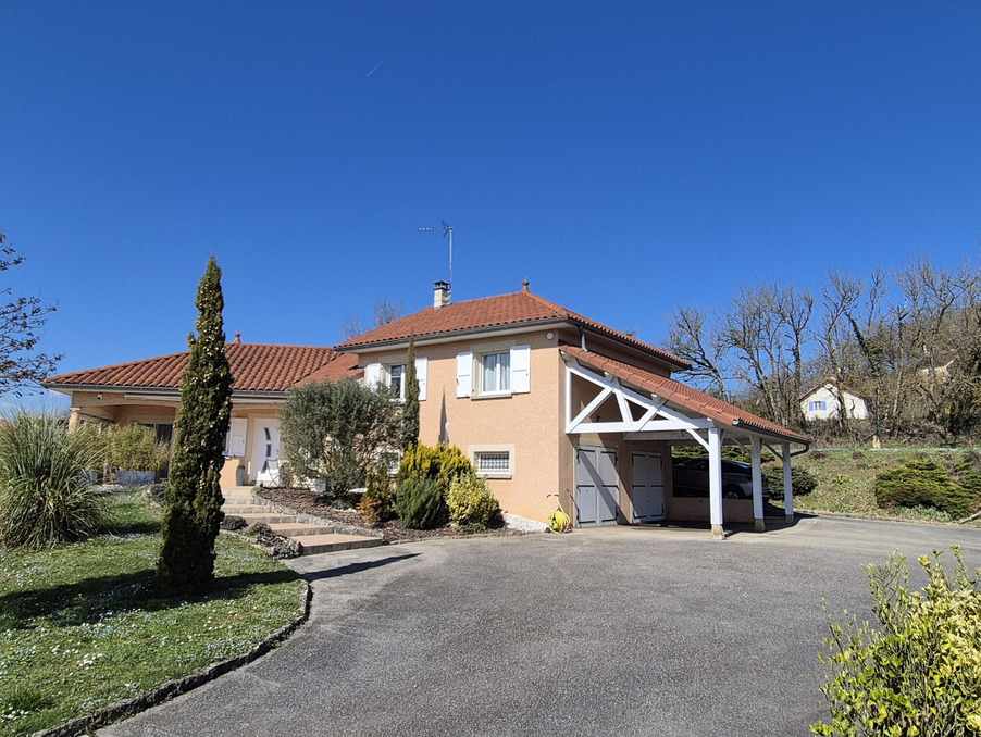Venez découvrir cette splendide maison de type 5 achevée en 2003, offrant une surface habitable de 120 m2, un double garage avec buanderie de 50 m2, une cave de 12 m2, un carport de 32 m2, ainsi que 85 m2 de terrasse répartie en 3 espaces et exposée SUD-OUEST, faisant face à une splendide piscine de 9X4 entièrement sécurisée avec son pool house.