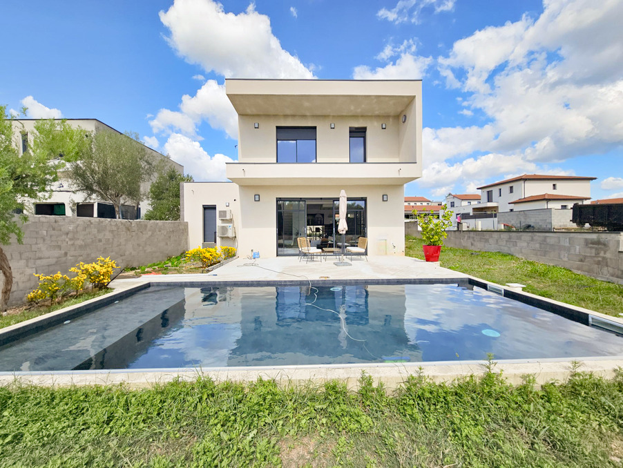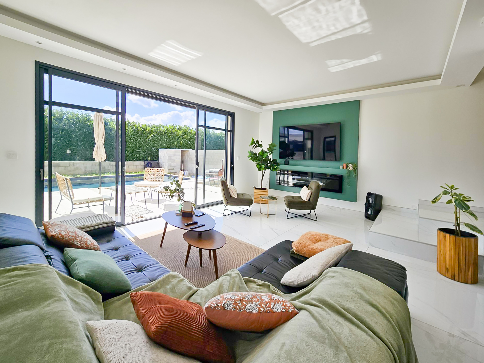 EN EXCLUSIVITE - Maison contemporaine de 150m2 récente entièrement domotisée, élégante avec des prestations haut de gamme sur un terrain de 610m2 plat, clôturé, joliment paysagé et agrémenté d'une pi...