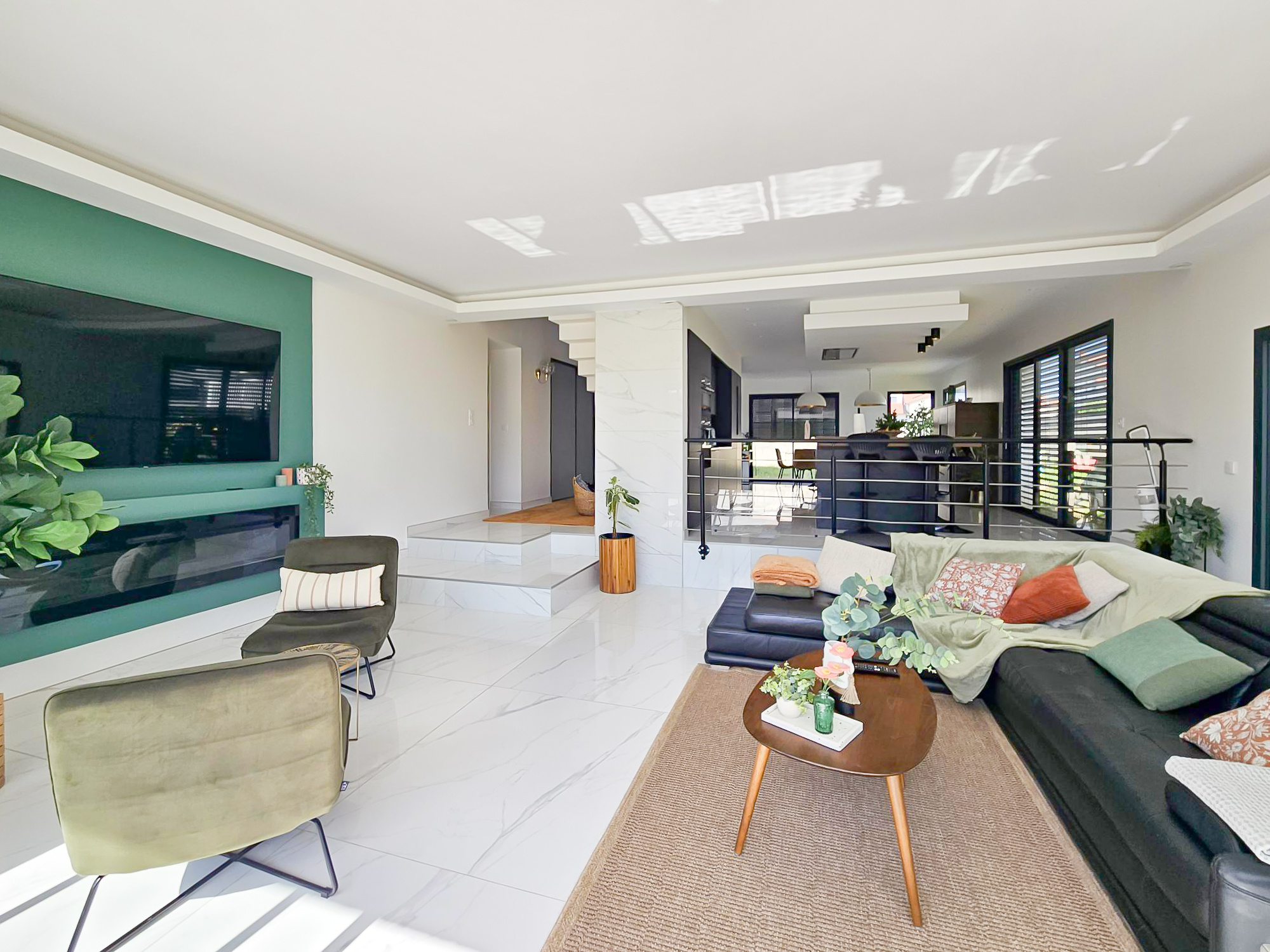 EN EXCLUSIVITE - Maison contemporaine plain pied avec des prestations haut de gamme de 140m2, élégante et raffinée avec des matériaux de qualité et une décoration de trés bon goût agrémentée + un dou...