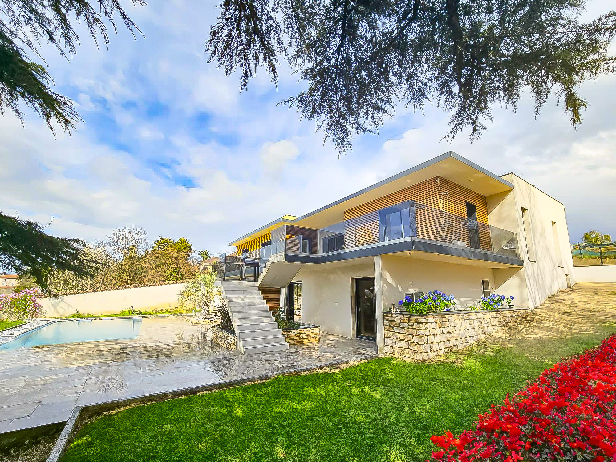 Cette Maison contemporaine récente d'environ 260m2 située dans un quartier résidentiel trés prisé calme et agréable à vivre, avec vue panoramique sur le Pilat, à proximité des commodités à pieds,
