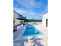 Elle offre 145 m2 habitable avec un garage carrelé et isolé de 21m2 sur un terrain paysagé de 520m2 agrémenté d'une piscine.