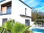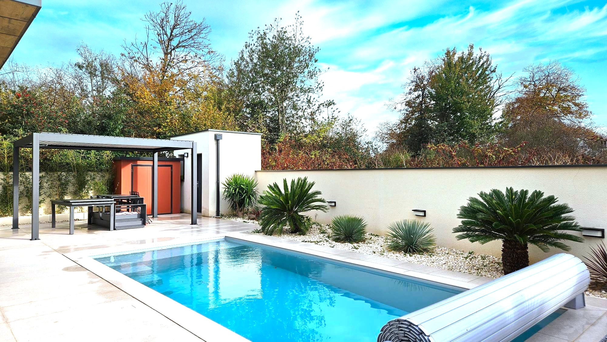 Maison récente contemporaine élégante avec des prestations haut de gamme de 163m2 sur un terrain de 560m2 entièrement paysagé, belle entrée pavée, agrémentée d'une piscine avec pool house, située sur le côteau de Roussillon, à 12 mn de Reventin, 18 mn de Vienne dans un quartier résidentiel calme et agréable à vivre et à 2 Kms d'une gare. Elle offre 4 chambres à l'étage dont une suite parentale de 30m2 avec salle d'eau privée, dressing aménagé et 3 chambres de 12m2 toutes aménagées avec placard mural et une grande salle de bain avec baignoire et douche. Une pièce à vivre en L de 56m2 avec cuisine américaine entièrement équipée, buanderie, et bureau au RDC. Garage de 30m2 carrelé et isolé. Trés bien décoré avec beaucoup de goût, vous n'avez qu'à poser vos valises. Coup de coeur assuré pour cette magnifique maison !!