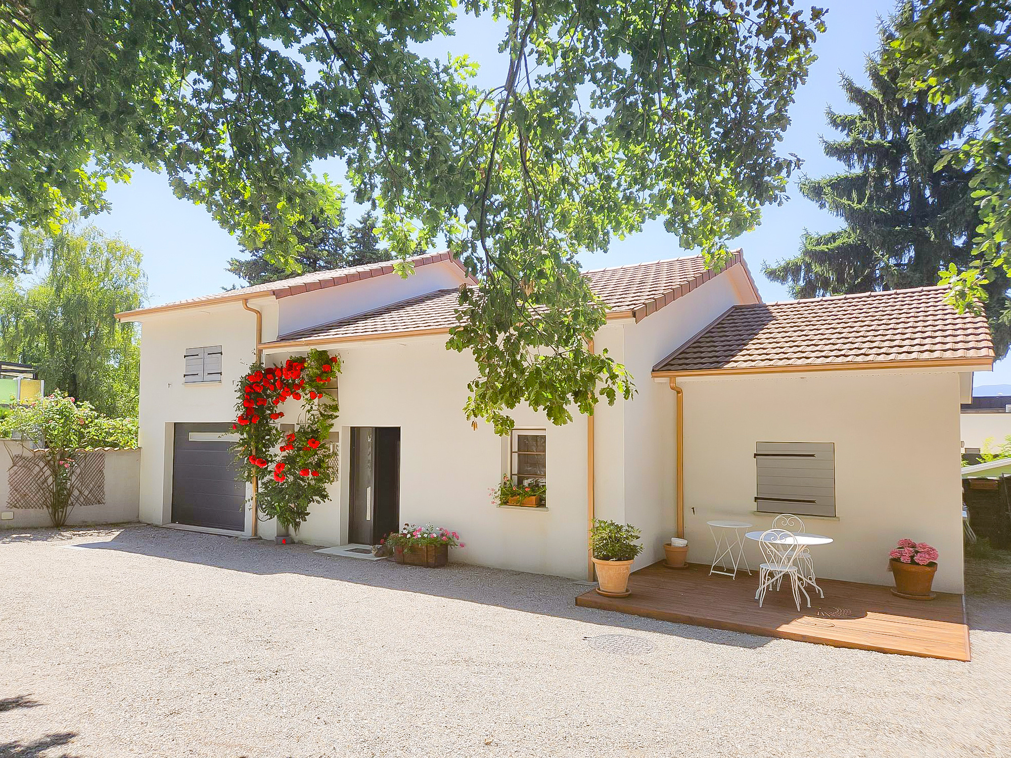SOUS COMPROMIS - EN EXCLUSIVITE - Maison familiale pleine de charme, décorée avec beaucoup de goût, de 143m2 dont un garage de 25m2 carrelé et isolé dans un écrin de verdure de 1153m2 avec de beaux arbres, entièrement clos, et une grande cour où vous pouvez garer une dizaine de voitures.