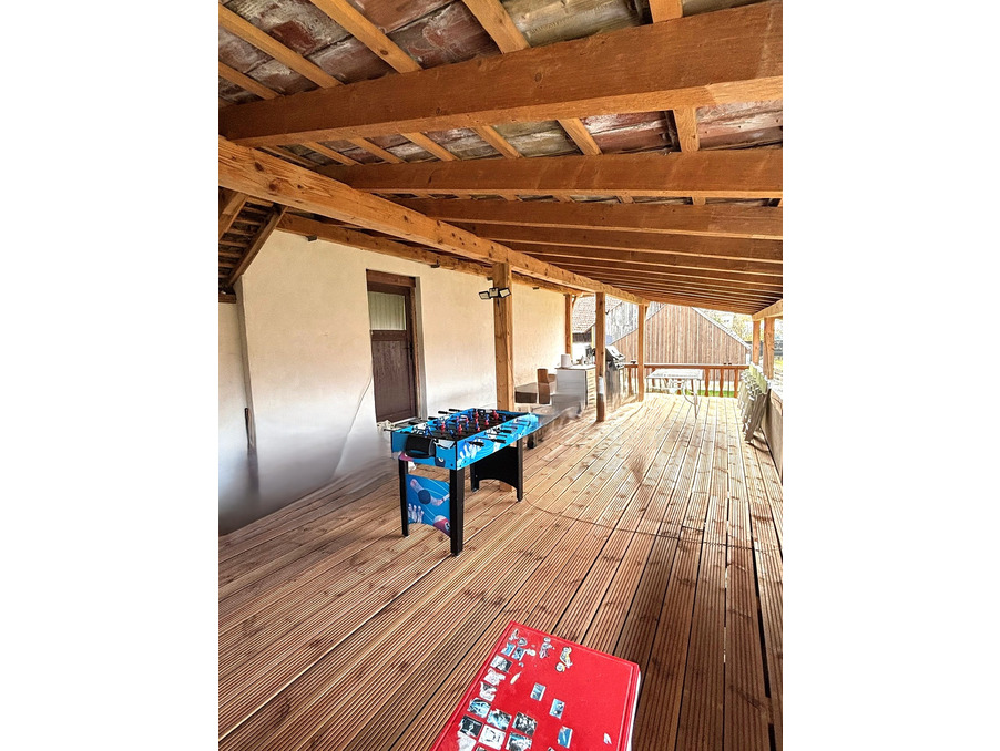 Prestations: fenêtres double vitrage, panneaux solaires et pompe à chaleur, installation gaz de ville, cheminée, isolation interieure, poutres apparentes, tomettes, deux garages.