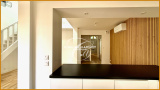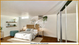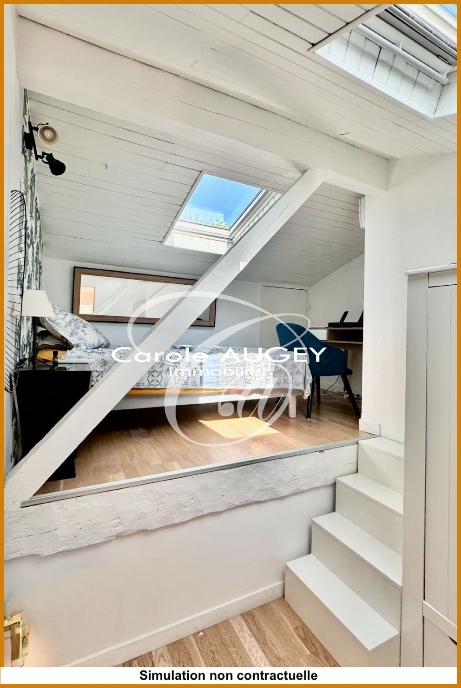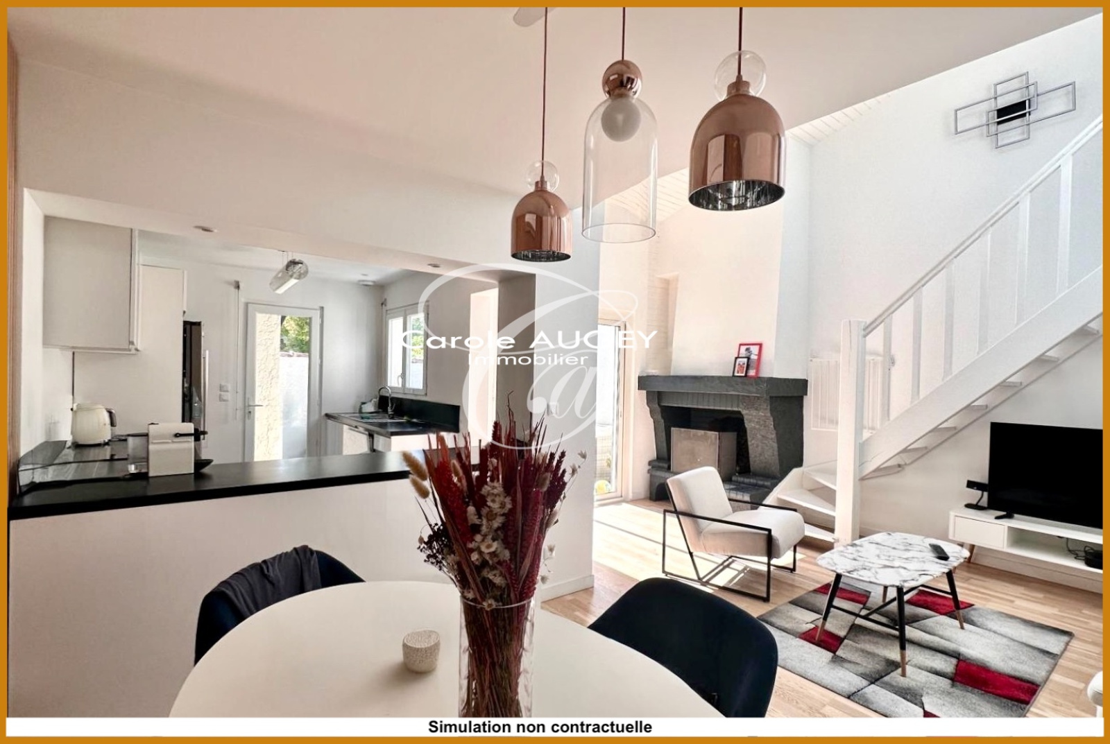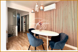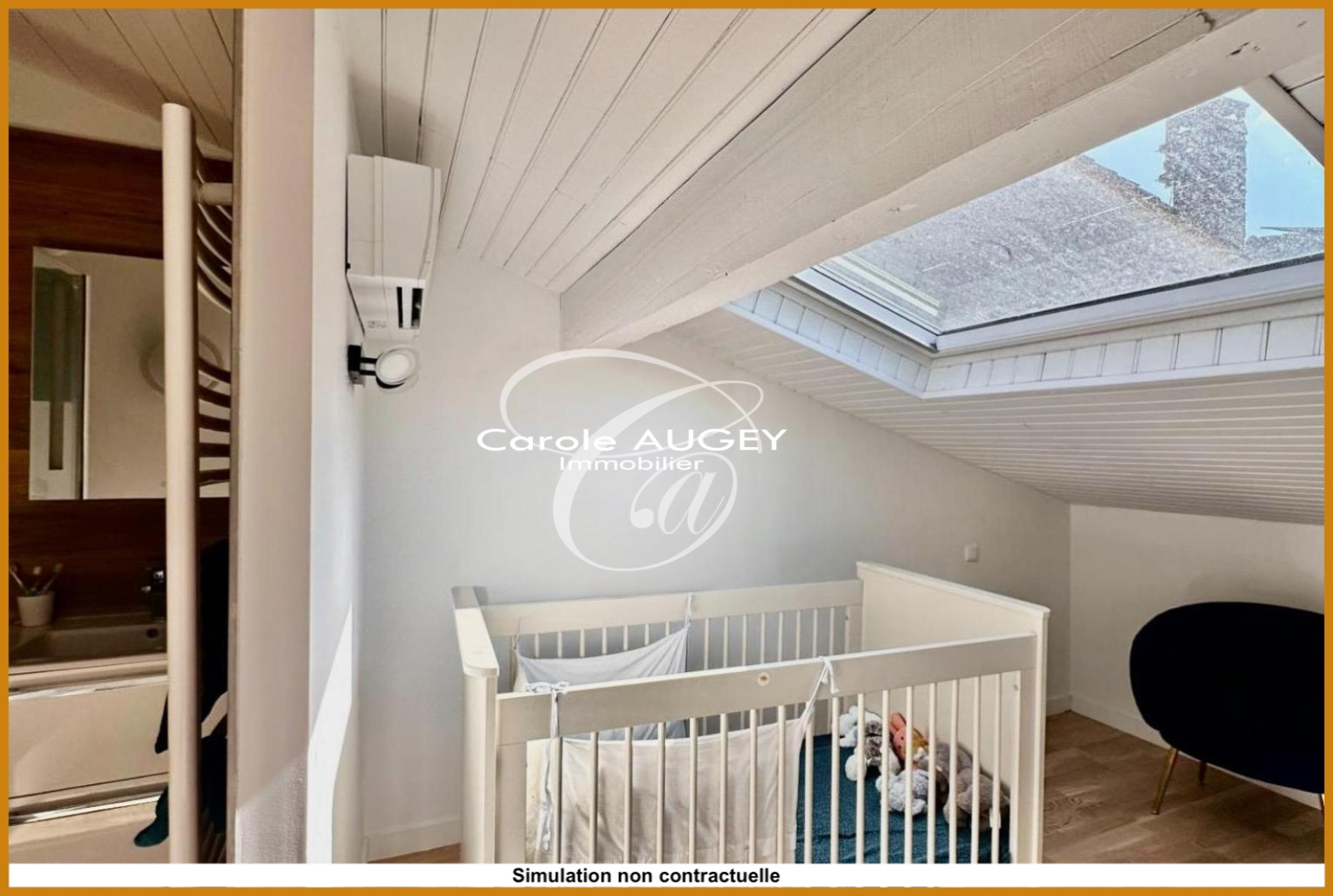 Une fois la porte franchie, vous êtes accueilli par une ambiance chaleureuse où le bois domine avec élégance. Le parquet au sol se marie parfaitement aux murs blancs, et un superbe mur en lamelles de bois ajoute une touche design qui donne le ton. La pièce de vie s’articule autour d’une cuisine américaine entièrement équipée, ouverte sur l’espace salon, pour une circulation fluide et conviviale.