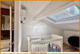 La maison propose quatre chambres : une en rez-de-chaussée, deux sous les toits avec leur espace dressing et salle d’eau, et une dernière au sous-sol, qui peut tout à fait devenir un bureau ou une pièce polyvalente selon vos besoins.
