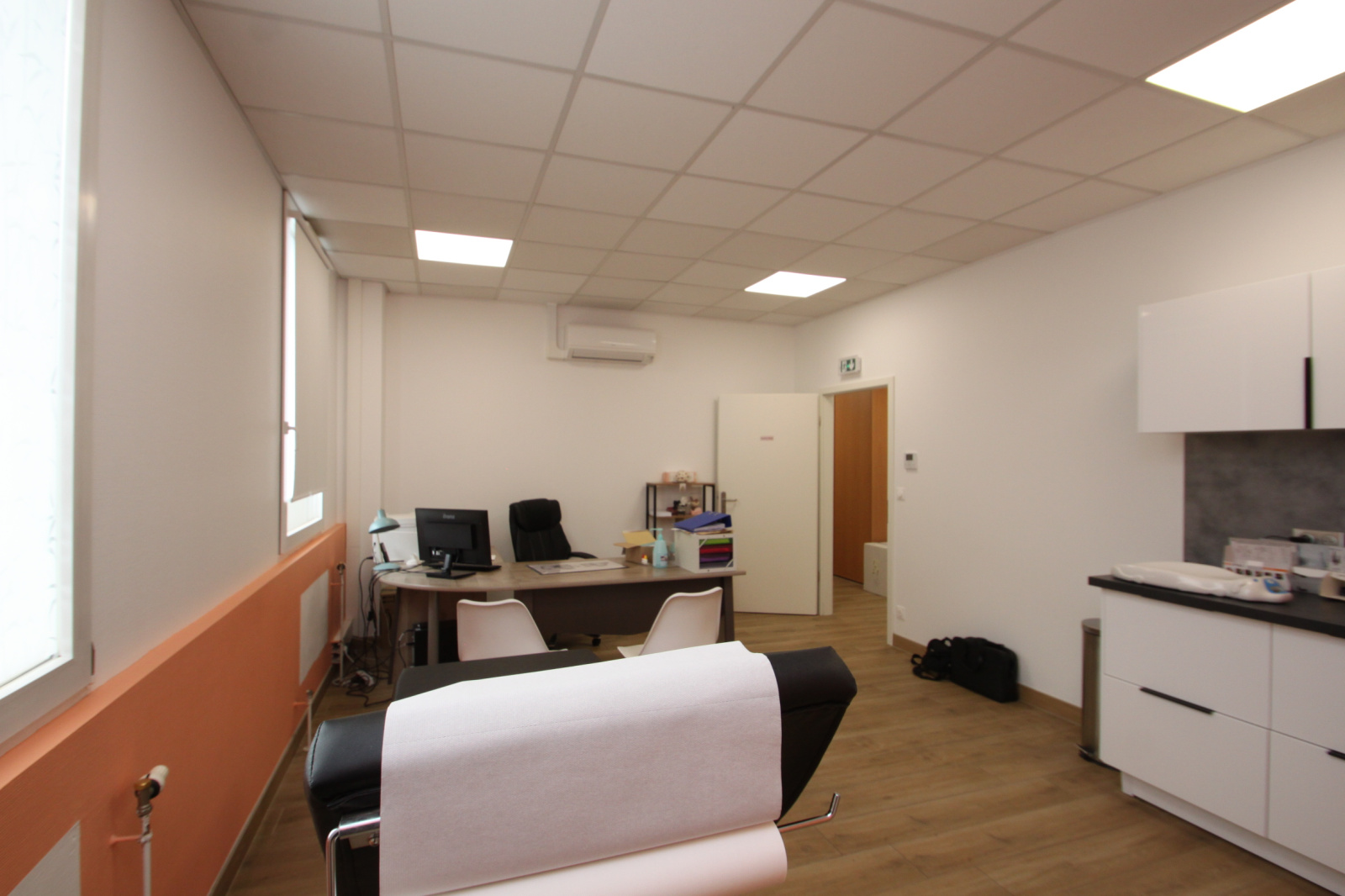 Au 41 route de jouy à Moulins Les Metz, Didier Hoffman, Agent Mandataire Privimo, vous propose ce local professionnel en parfait état, actuellement aménagé et occupé par deux médecins généralistes ; agencement fonctionnel : accueil/secrétariat distinct, salle d’attente, deux salles de consultation (ou bureaux fermés), grand dégagement facilitant les circulations et le rangement, WC, placards intégrés ; atouts : climatisation réversible dans toutes les pièces, immeuble avec ascenseur, 3 places de stationnement extérieures privatives et réservées au local ; espaces propres, entretenus et immédiatement opérationnels ; plan modulable pour adapter les pièces à vos besoins (soins, bureaux, salles de réunion) ; usages possibles : cabinet médical/paramédical (médecins, infirmiers, kinés, orthophonistes, etc.) ou bureaux (société de services, professions libérales, start-up, agence…) ; points forts : prêt à l’emploi, sans travaux à prévoir, confort thermique assuré toute l’année, stationnement privilégié pour praticiens, collaborateurs ou visiteurs ; pour toute information complémentaire (conditions d’occupation actuelles, charges, dossier de plans, visites), contactez-nous ; une visite vous permettra d’apprécier la qualité des prestations et le potentiel d’adaptation à votre activité.
