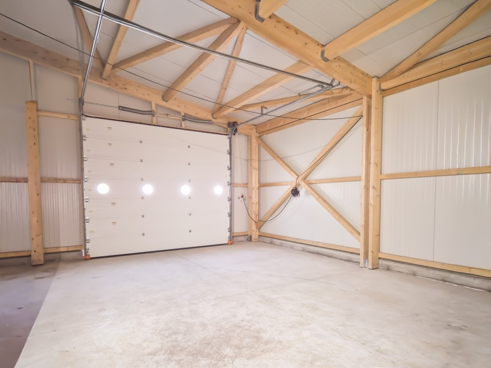 RDC : salle de réception / show-room / exposition avec vitrine 4 m x 2 m pour environ 80 m2, wc aux normes PMR, réserve ou bureaux avec entrée indépendante environ 43 m2, garage/réserve de 54 m2 avec porte automatique 4 m x 4 m.