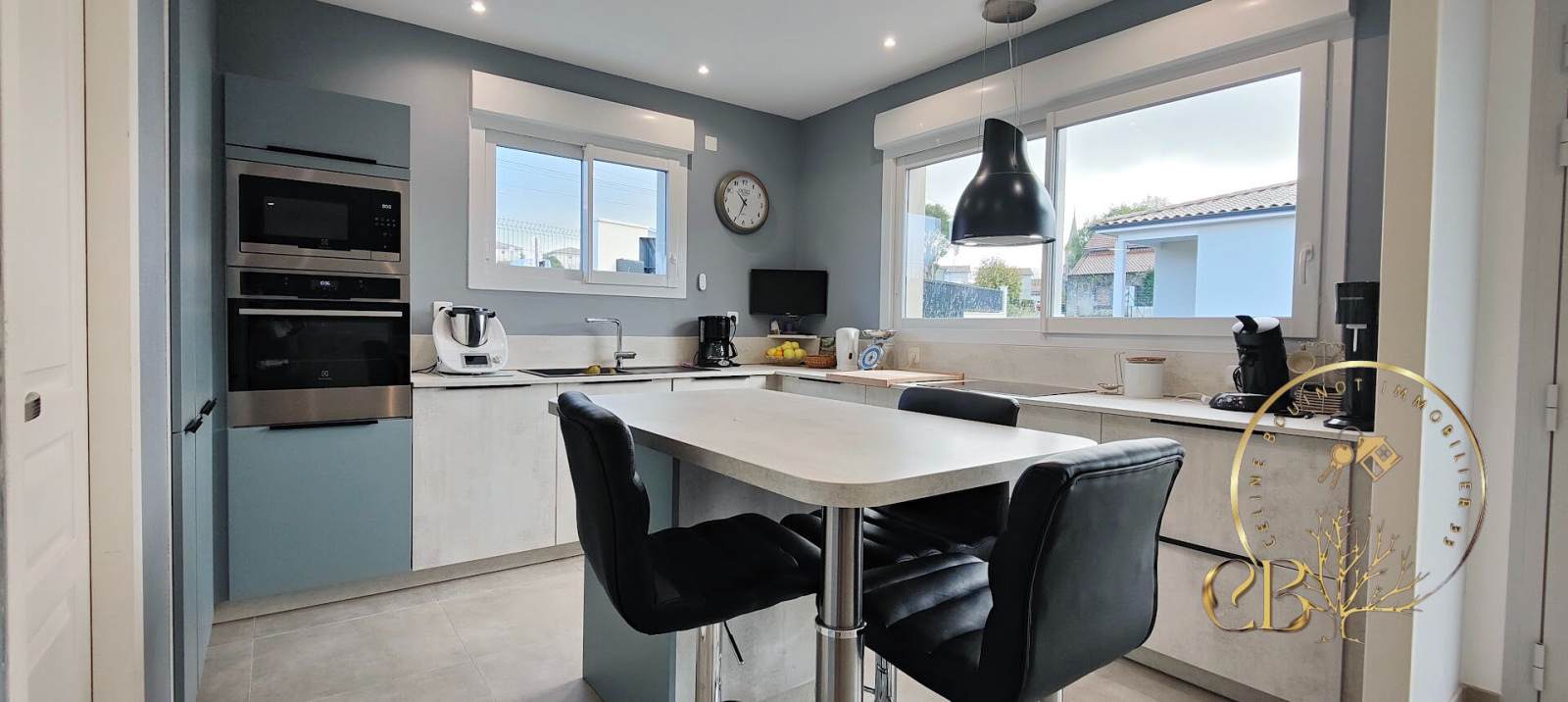 Venez découvrir à St Caprais de Blaye, cette belle maison rénovée entièrement avec un garage isolé de 50 m². Proche de toutes commodités, proche St Ciers sur Gironde, Mirambeau, Étauliers, St Aubin de Blaye, sortie péage à 5 minutes pour aller vers Paris et où vers Bordeaux, ramasse scolaire, bus pour aller à Bordeaux. Cette belle maison de plain-pied, vous accueil avec un parking goudronné, un garage de 50 m², avec porte électrique, isolé, une petite cuisine, une salle d'eau, une cave, une place de parking pour une voiture, double vitrage est isolé. Sur une parcelle de 550 m² (attente géomètre pour avoir la contenance exacte) avec un portail électrique. Cette maison se compose ; Une belle entrée qui donne sur le salon/salle à manger, à droite une belle cuisine équipée et aménagée (sauf la hotte aspirante) et d'un cellier buanderie. À droite de la salle à manger, un bureau et ou une chambre (10 m²), une porte entre la salle à manger et le bureau nous emmène vers une petite véranda chauffée qui va sur le jardin derrière la maison. un couloir pour aller vers 3 chambres avec placard, une salle d'eau avec douche italienne et WC . Un plus, la chambre parentale avec une grande penderie a une porte pour aller à la salle d'eau. Double vitrage, volets roulants électriques, plancher chauffant, pompe à chaleur, tout à l'égout, combles isolés, parking goudronné. Vous pouvez poser vos bagages avec zéro travaux. Si vous voulez plus de renseignements sur cette belle maison, n'hésitez pas à me contacter. Les informations sur les risques auxquels ce bien est exposé sont disponibles sur le site Géorisques : www.georisques.gouv.fr