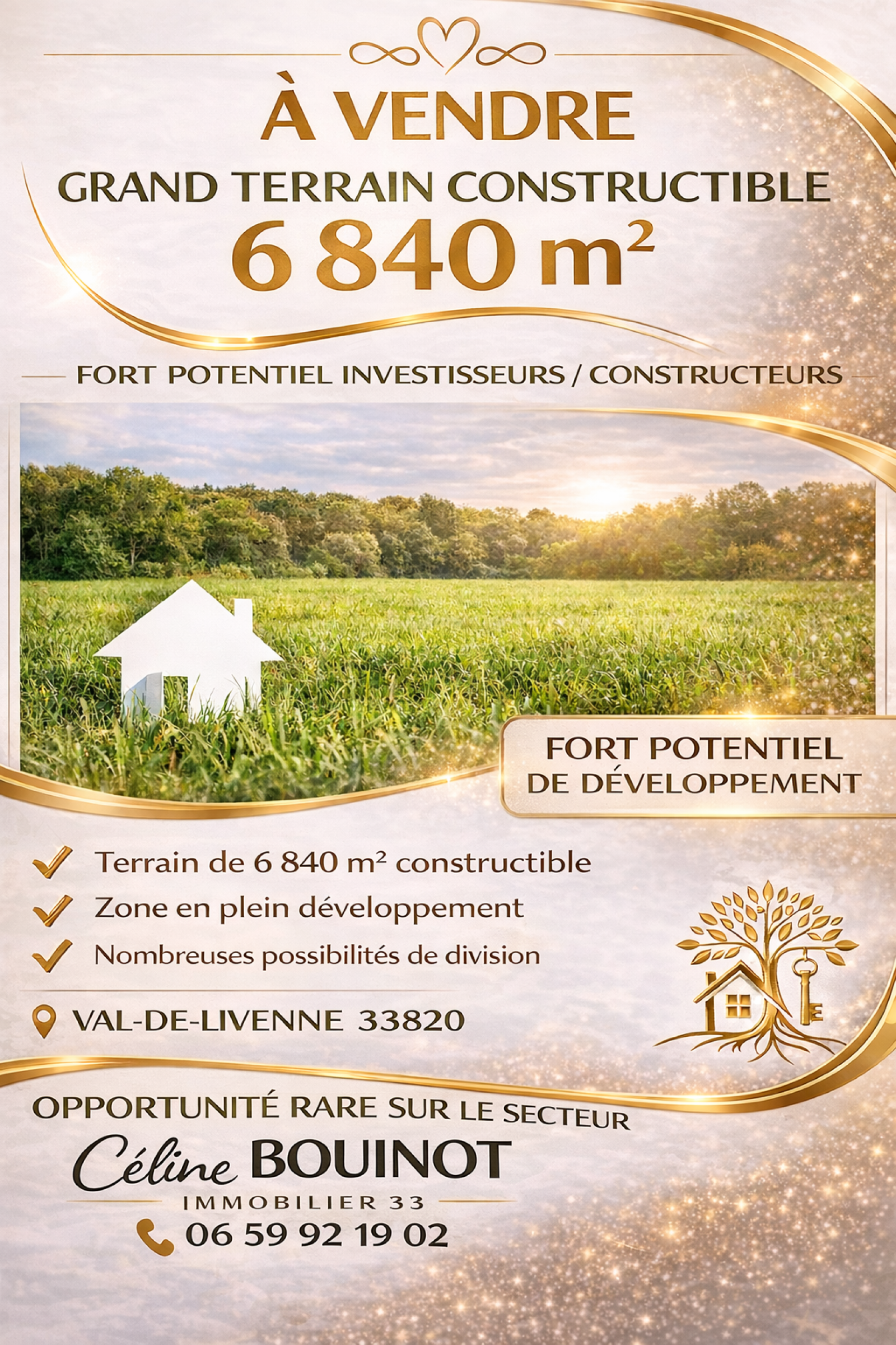 Grand terrain constructible – 6 840 m² – Fort potentiel – Investisseurs / Constructeurs