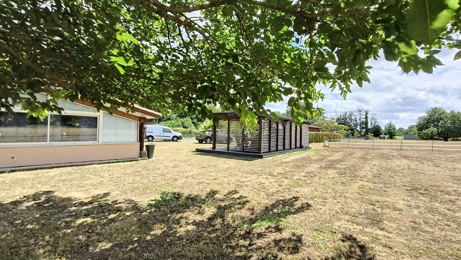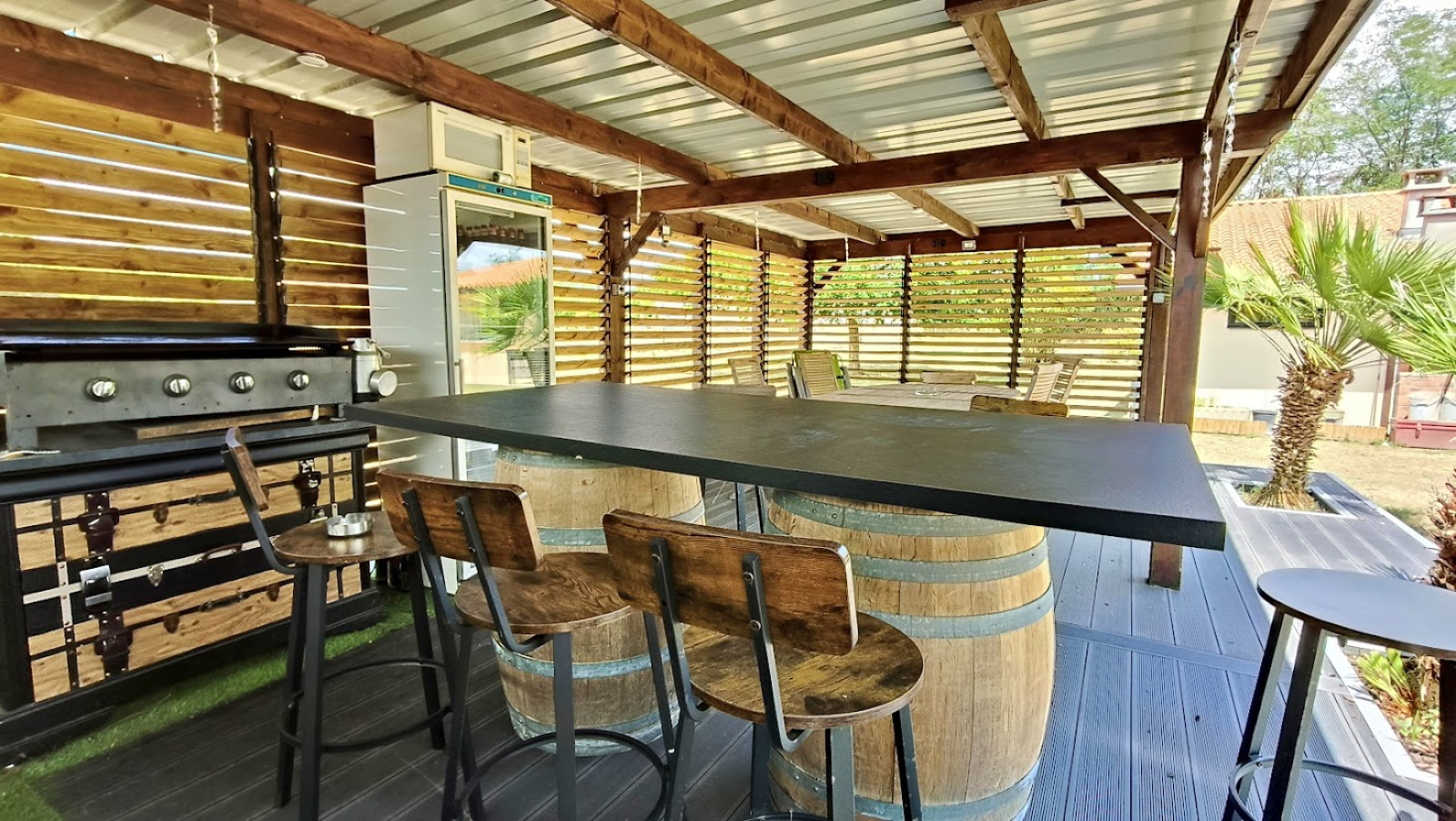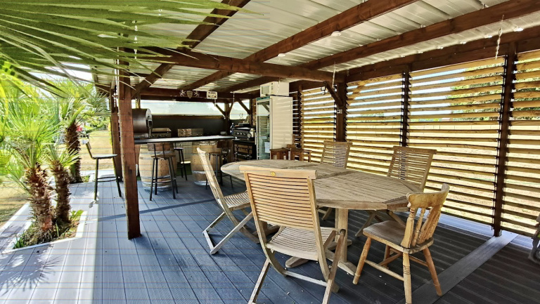Coin repas extérieur couvert et équipé, parfait pour les beaux jours