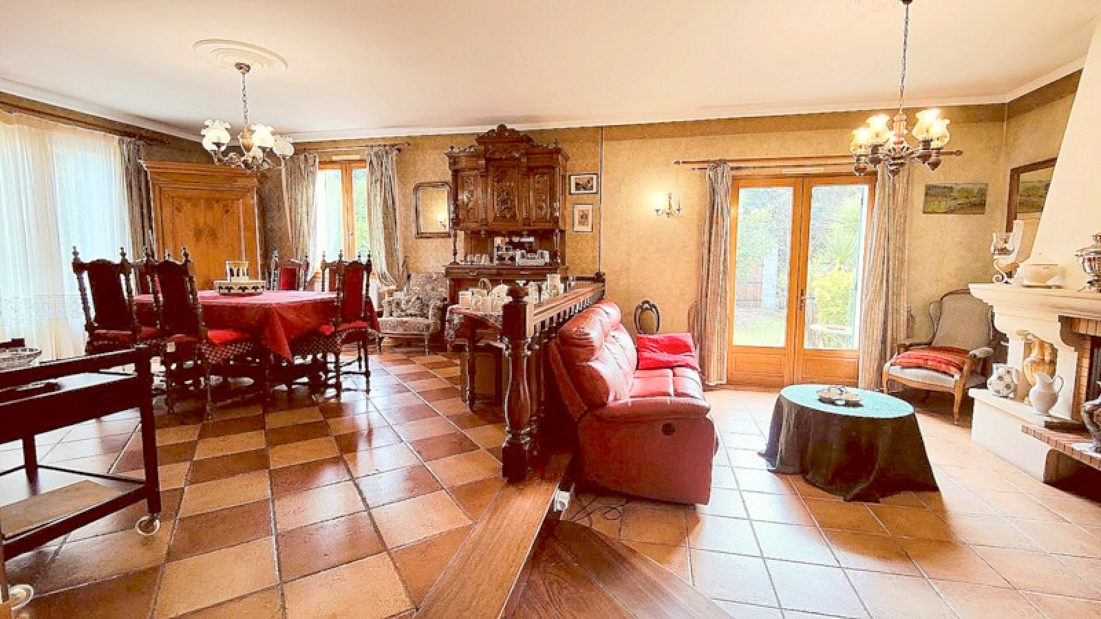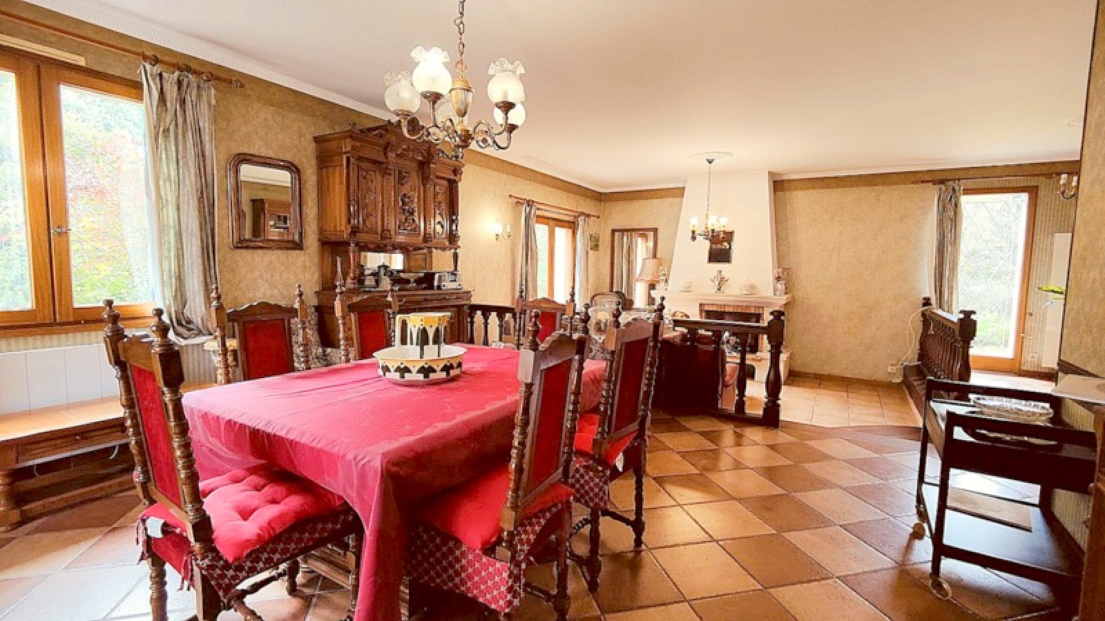 - Un grand espace salle à manger et salon, doté d'une cheminée parfaite pour vos soirées cocooning.
